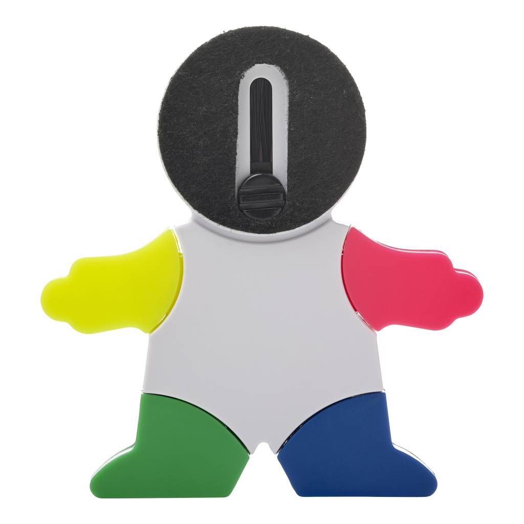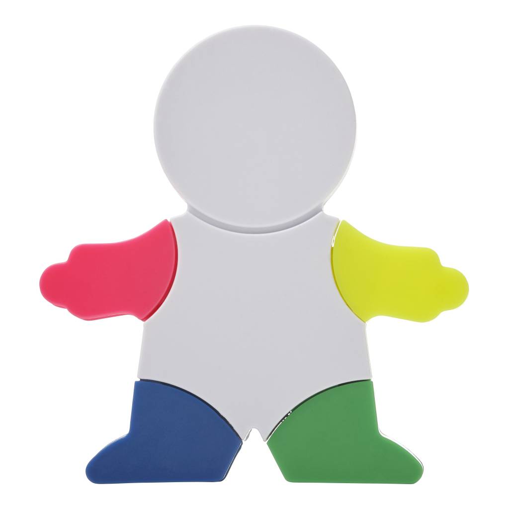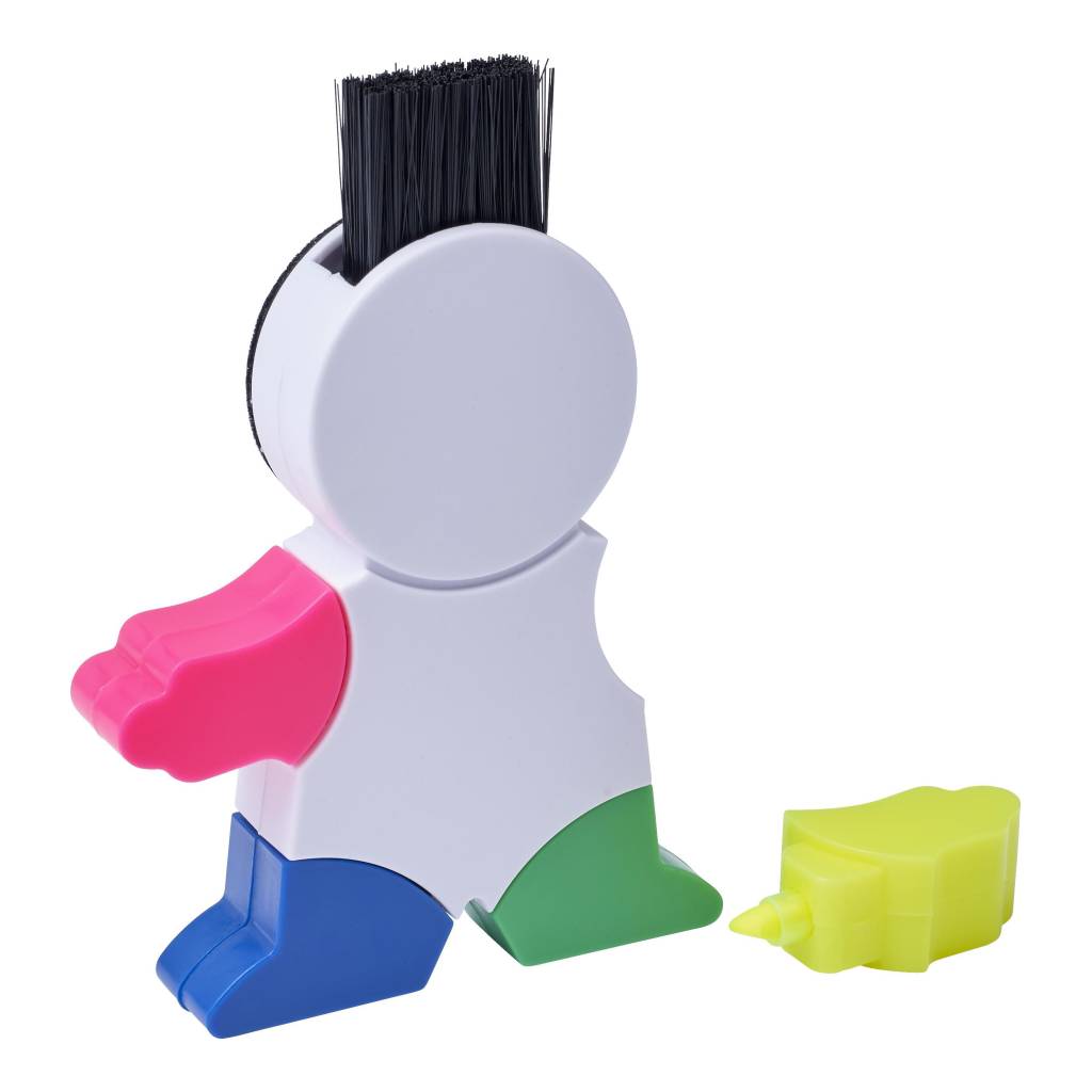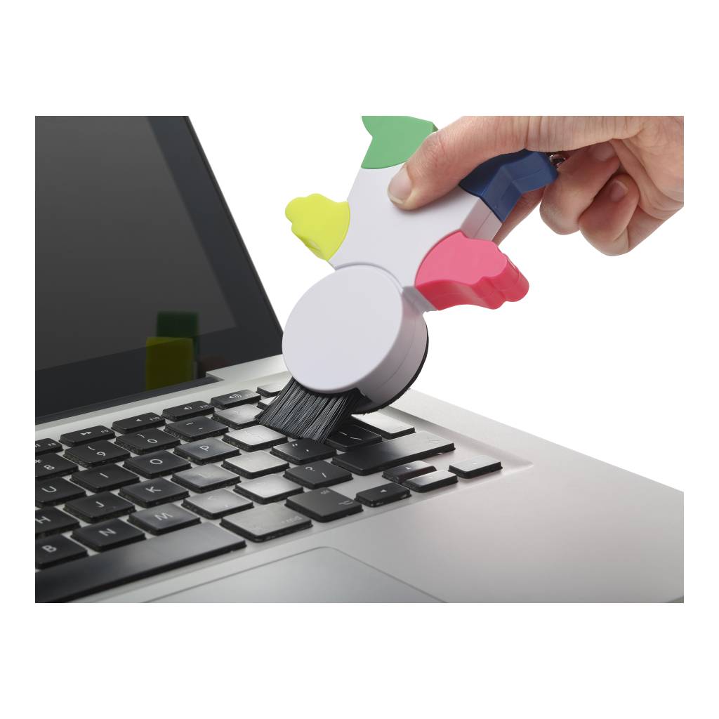 ABS highlighter with four colors, screen cleaner, and an extendable keyboard brush.