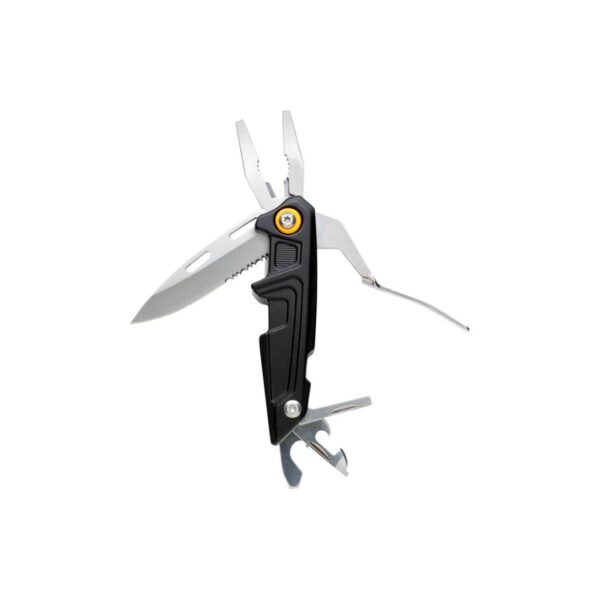 Ultra-strong tool with 13 functions. Packed in luxury gift box including high quality 1680D pouch. Aluminium material body and stainless steel tools. Tools included: Long nose pliers, standard pliers, wire cutters, serrated blade, bottle opener, large flat screwdriver, medium flat screwdriver, knife, file, phillips screwdriver, can opener, small flat screwdriver, saw.