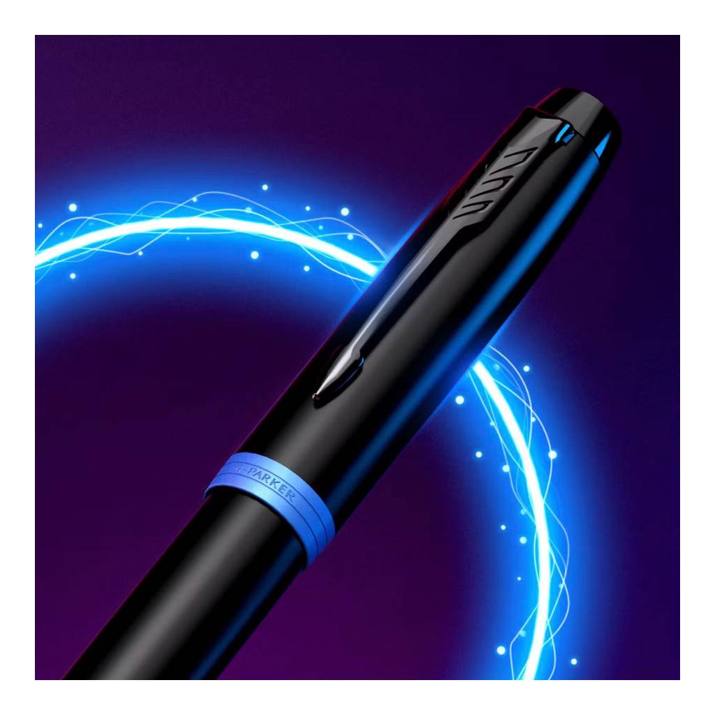 Parker IM Vibrant Rings PVD ballpoint pen with click mechanism. Blue ink. Including giftbox.