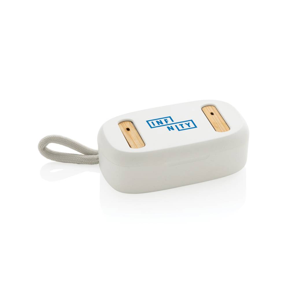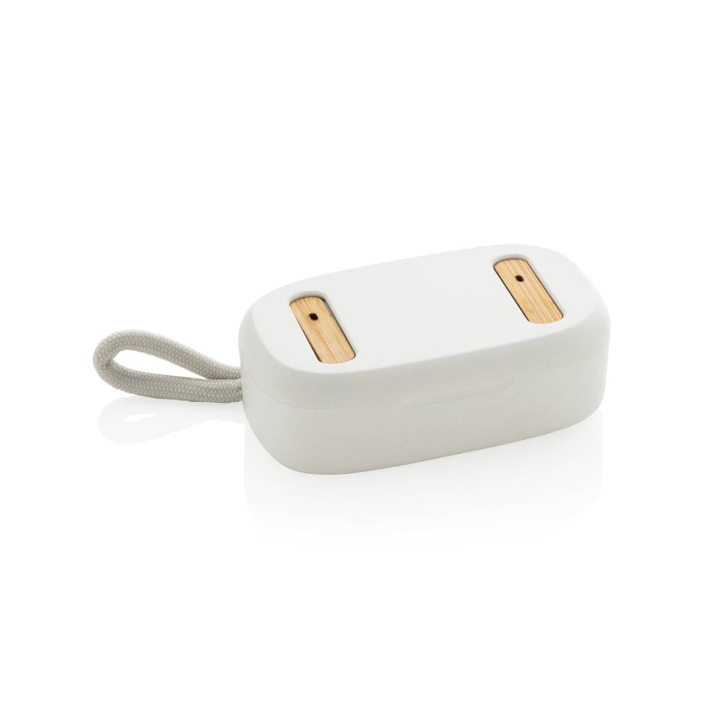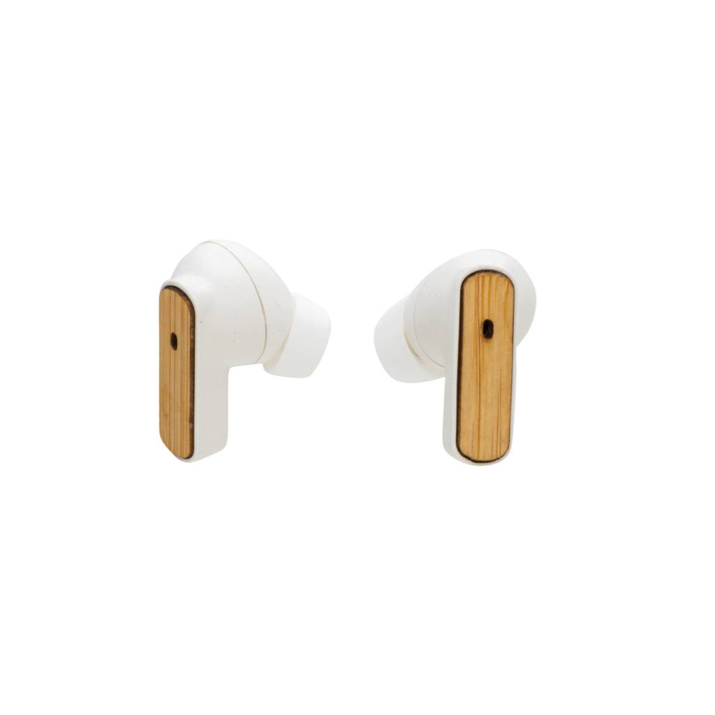 Next generation FSC® 100% Bamboo true wireless earbuds in RCS recycled ABS charging case. The earbuds and charging case are made with RCS (Recycled Claim Standard) certified recycled ABS. Total recycled content: 58% based on total item weight. RCS certification ensures a completely certified supply chain of the recycled materials. The perfectly fitting earbuds have a 40 mAh battery and can be re-charged in the 400 mAh charging case within 1 hour. With auto pairing function so easy to pair to your mobile device. Playing time on medium volume about 5 hours. With BT 5.3 for optimal connection. Operating distance up to 10 metres. With pick up and mic. Including 3 size silicone ear tips. Including GRS certified recycled TPE charging cable. Packed in FSC® mix kraft packaging. Item and accessories 100% PVC free.