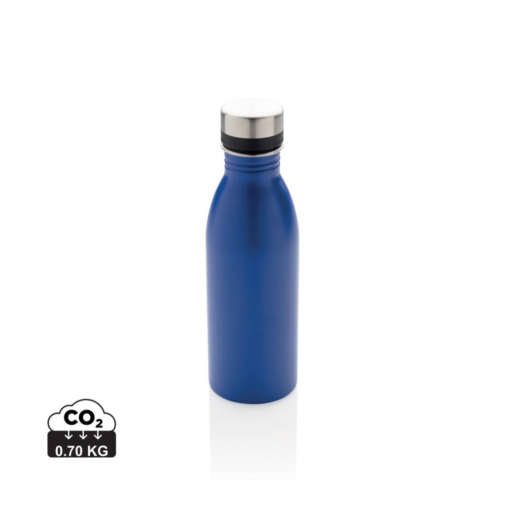 This perfect size and lightweight reusable bottle is made from 18/8 durable recycled stainless steel. Leakproof and perfect for everyday carrying and hydration. Recommended for cold water only. Made with RCS (Recycled Claim Standard) certified recycled materials. RCS certification ensures a completely certified supply chain of the recycled materials. Total recycled content: 80% based on total item weight. BPA free. Capacity 500ml. Including FSC®-certified kraft packaging.