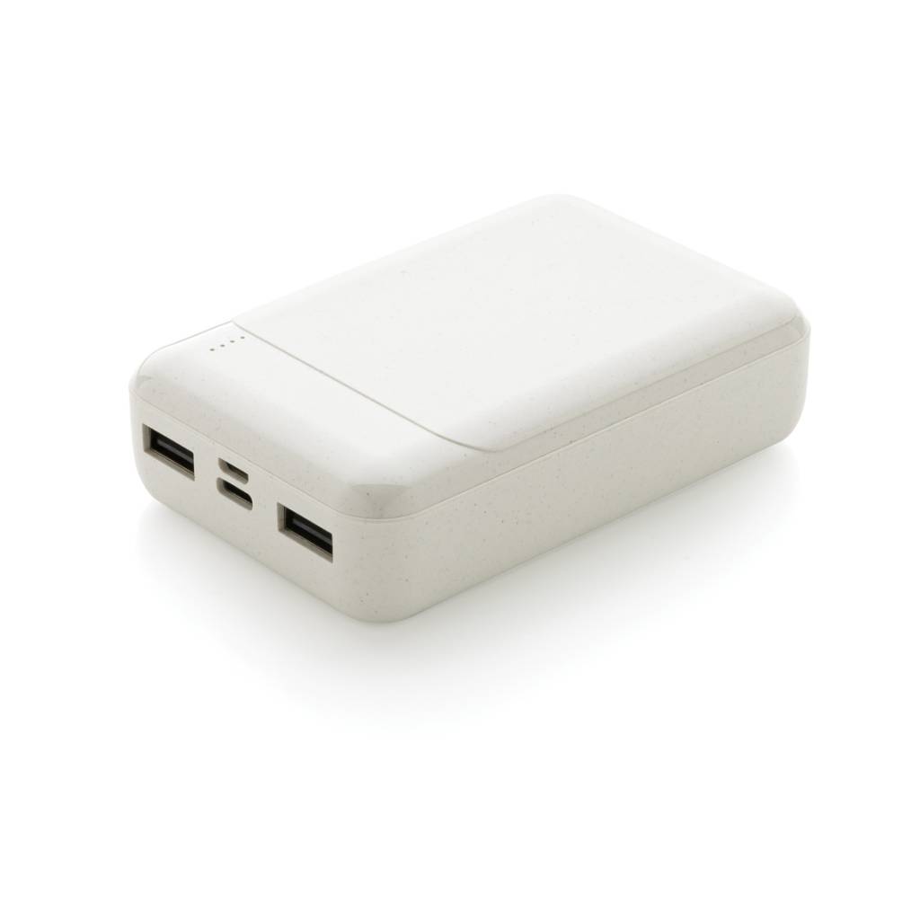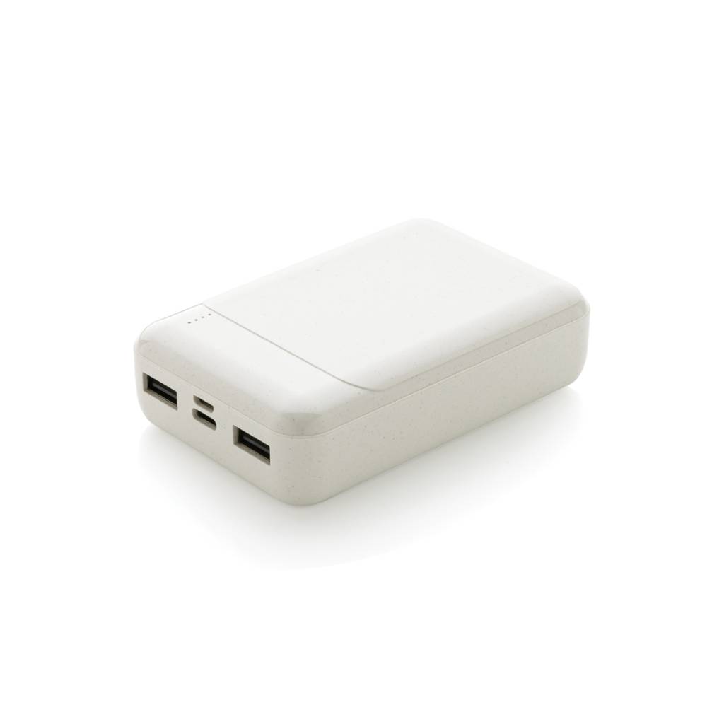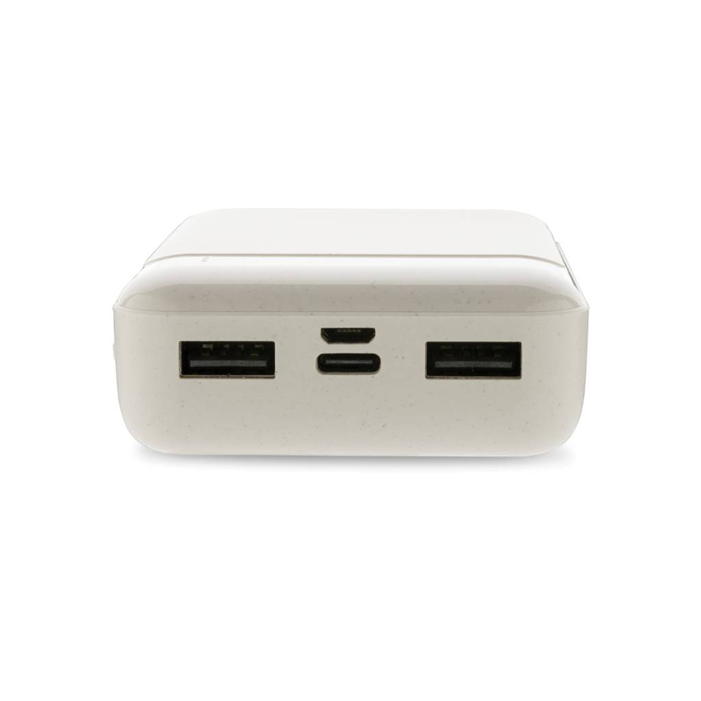 10.000 mAh pocket size powerbank where the case is made out of RCS certified recycled ABS plastic. RCS (Recycled Claim Standard) is a standard to verify the recycled content of a product throughout the whole supply chain. Total recycled content: 15% based on total item weight. When fully charged the powerbank provides you with enough energy to re-charge your mobile phone up to five times. The powerbank contains a long lasting grade A 10.000 mAh high-density lithium polymer battery. The power indicators will indicate the remaining energy level so you always know when to re-charge. Micro USB Input 5V/2A; Type-C Input 5V/2A; USB output 5V/2A; Item and accessories PVC free. Including PVC free recycled TPE material charging cable.