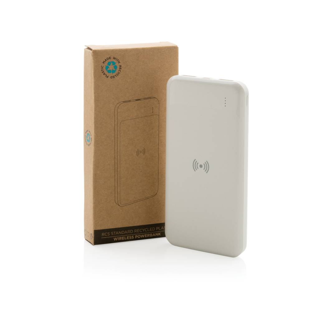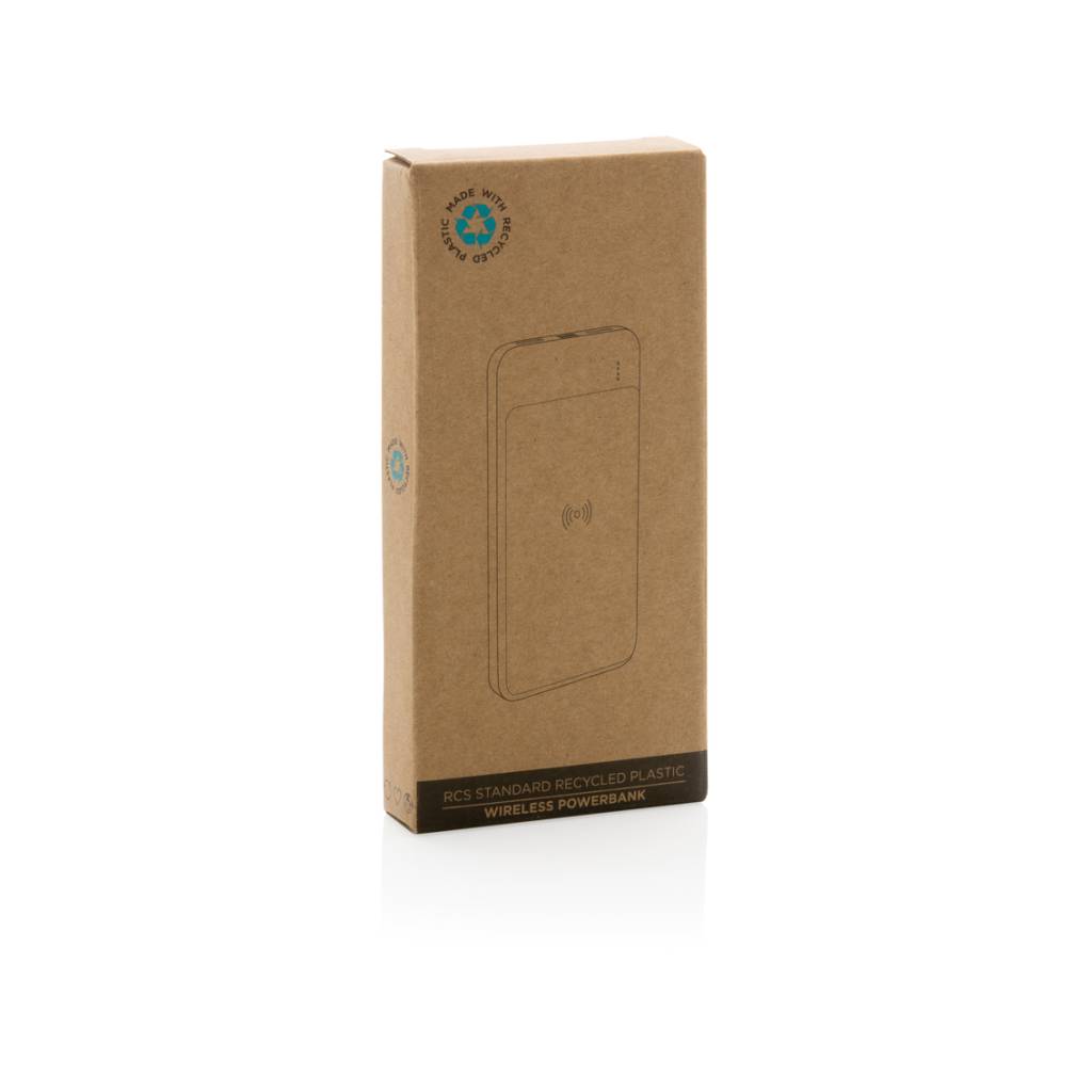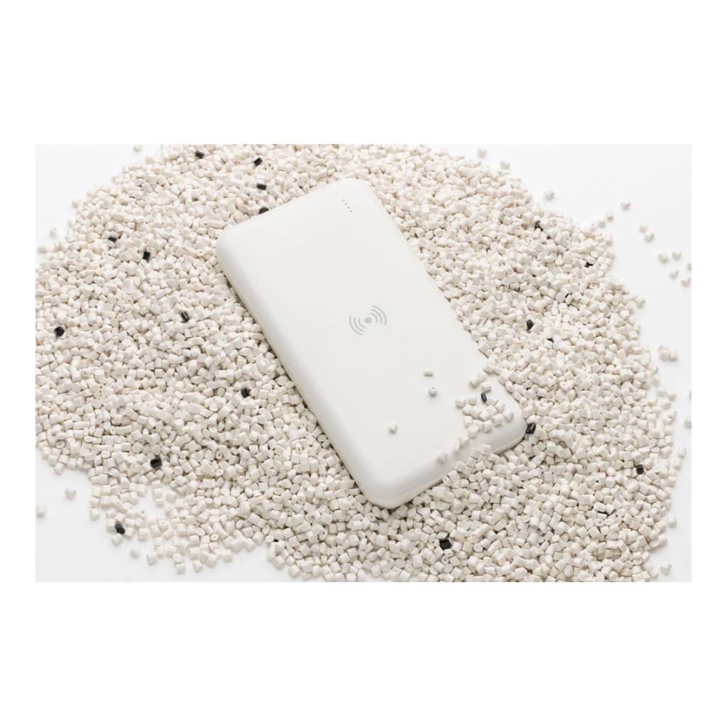 8.000 mAh powerbank with 5W wireless charger where the case is made out of RCS certified recycled ABS plastic. RCS (Recycled Claim Standard) is a standard to verify the recycled content of a product throughout the whole supply chain. Total recycled content: 22% based on total item weight. When fully charged the powerbank provides you with enough energy to re-charge your mobile phone up to four times. The powerbank contains a long lasting grade A 8.000 mAh lithium polymer battery. The power indicators will indicate the remaining energy level so you always know when to re-charge. Type-C input 5V/2A; Micro USB Input 5V/2A; Wireless Output 5W; 2x USB output 5V/2A; Item and accessories PVC free. Including PVC free recycled TPE material charging cable.