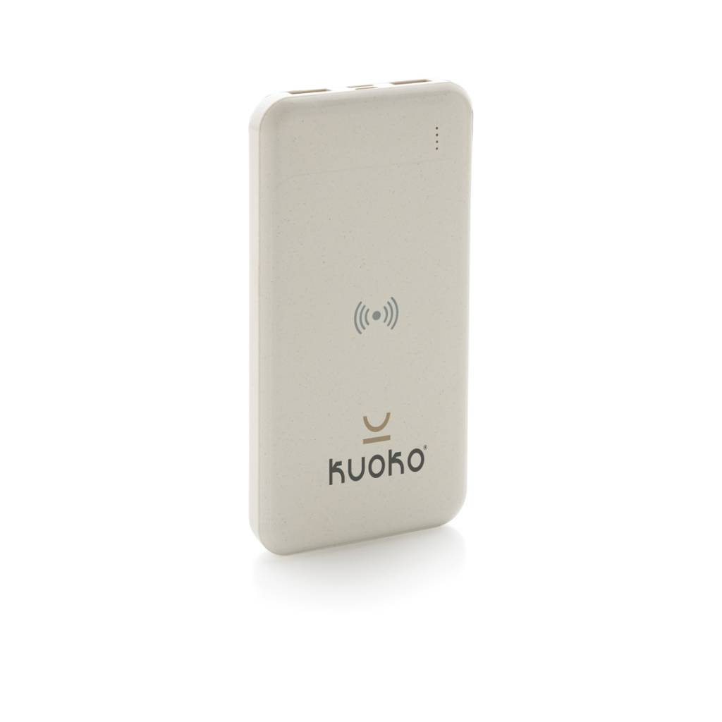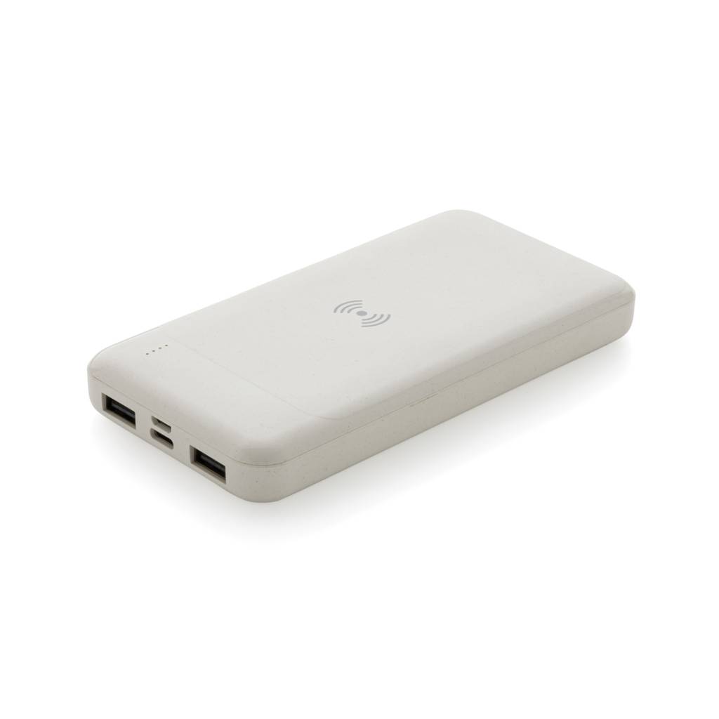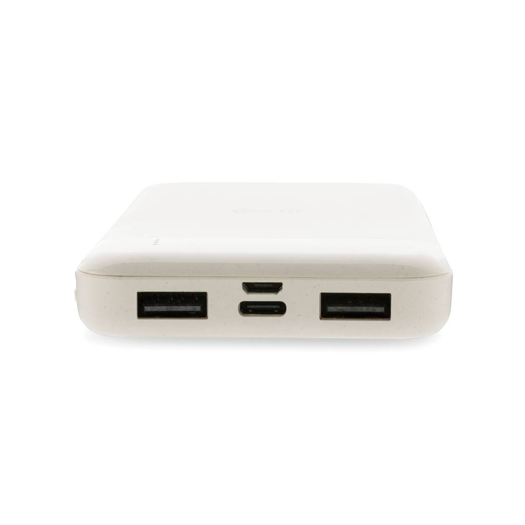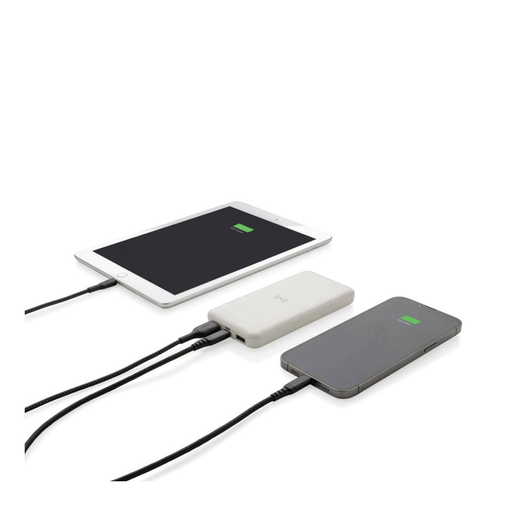 8.000 mAh powerbank with 5W wireless charger where the case is made out of RCS certified recycled ABS plastic. RCS (Recycled Claim Standard) is a standard to verify the recycled content of a product throughout the whole supply chain. Total recycled content: 22% based on total item weight. When fully charged the powerbank provides you with enough energy to re-charge your mobile phone up to four times. The powerbank contains a long lasting grade A 8.000 mAh lithium polymer battery. The power indicators will indicate the remaining energy level so you always know when to re-charge. Type-C input 5V/2A; Micro USB Input 5V/2A; Wireless Output 5W; 2x USB output 5V/2A; Item and accessories PVC free. Including PVC free recycled TPE material charging cable.