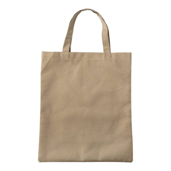 RPET polyester (600D) drawstring bag. Cork bottom and nature color. Small pocket on front. With RPET label.