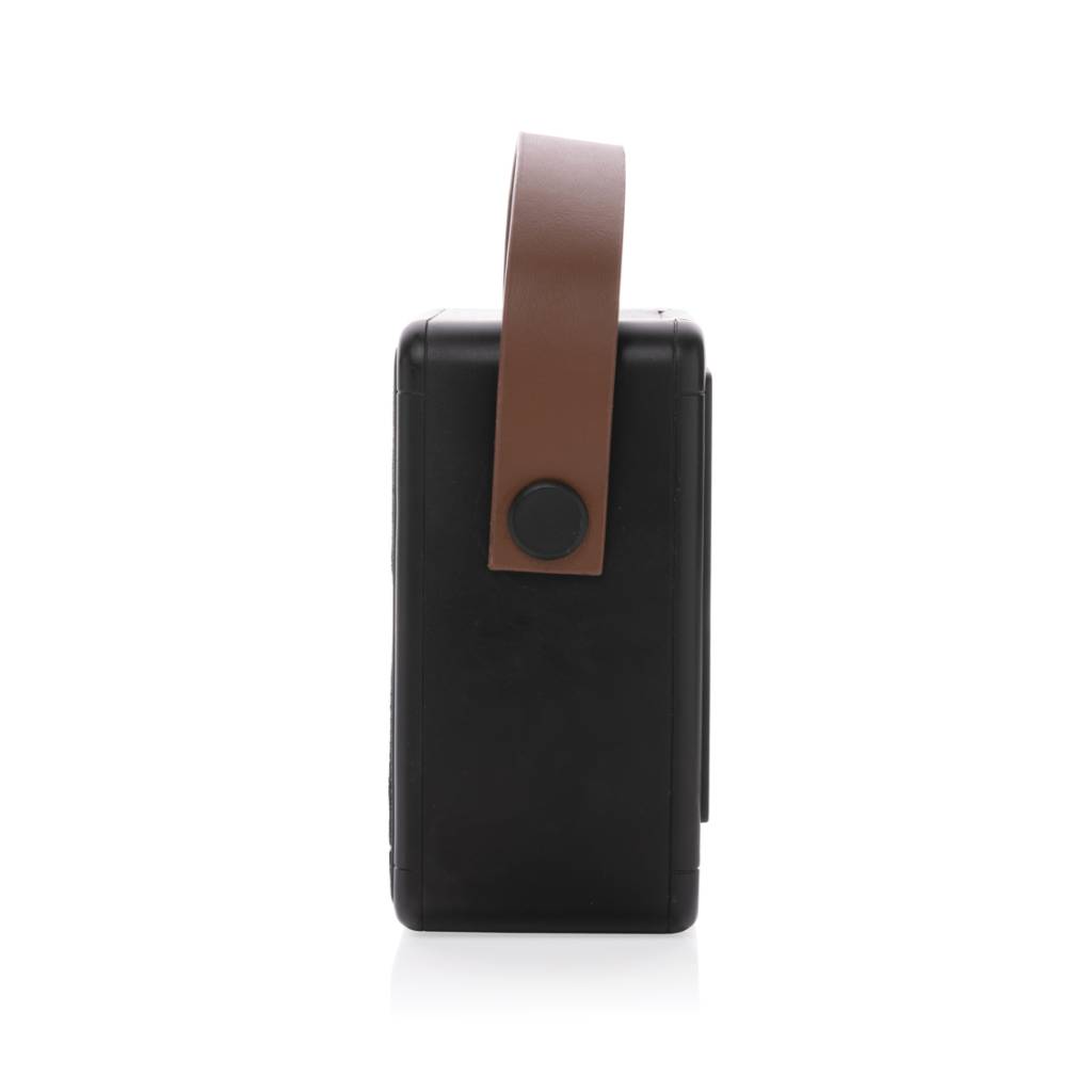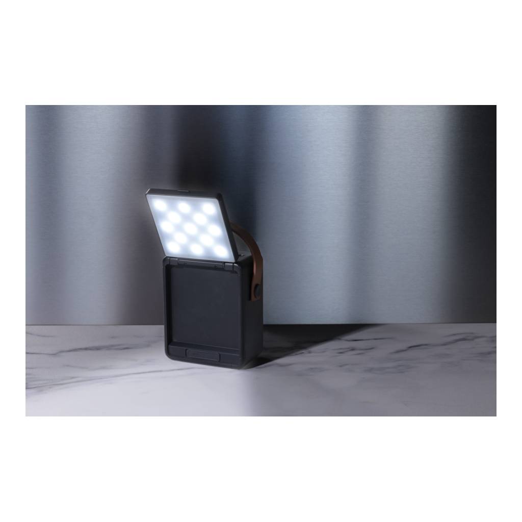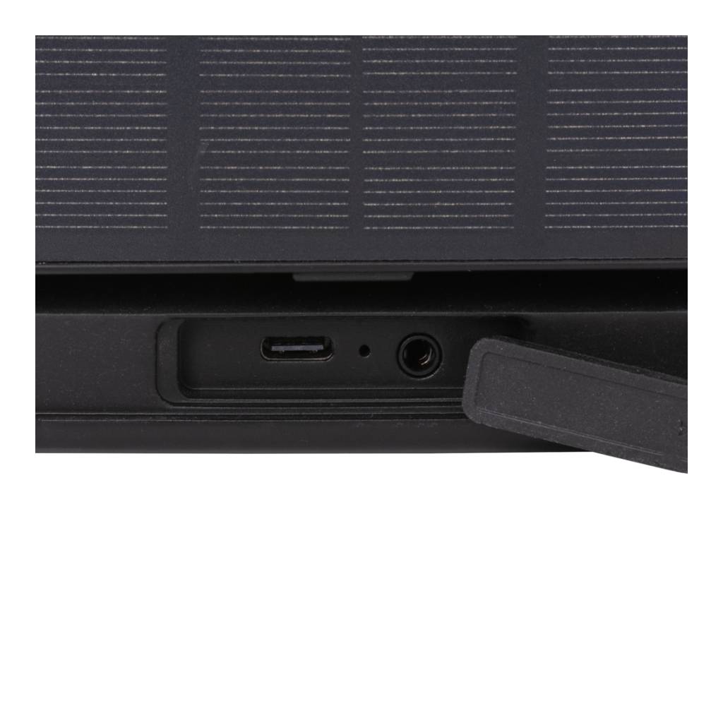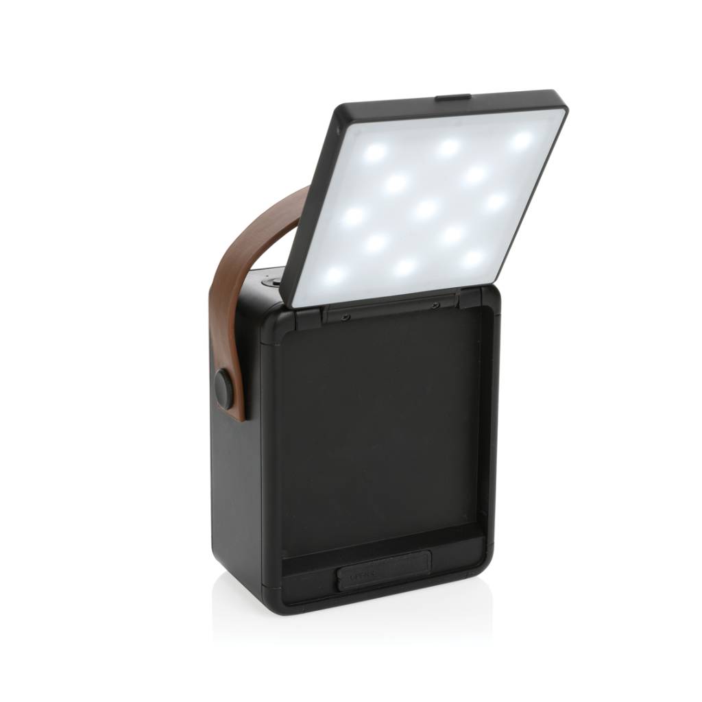 Powerful 12W wireless speaker with integrated large solar panel in RCS certified recycled ABS. Total recycled content: 16% based on total item weight. RCS certification ensures a completely certified supply chain of the recycled materials. The speaker uses high quality monocrystalline solar panels with 19% conversion rate. Charge rate depends on conditions. With integrated LED lamp to use the speaker even when the sun has set. The speaker is equipped with a 2000 mAh battery to ensure up to 8 hours of playing time and BT5.3 for smooth connection and clear sound. Connection range up to 10 metres. With mic and pick up function to answer calls. Charging speed solar: 5V/300mA. Packed in FSC mix FSC® box. Including RCS certified recycled TPE charging cable. Item and accessories 100% PVC free