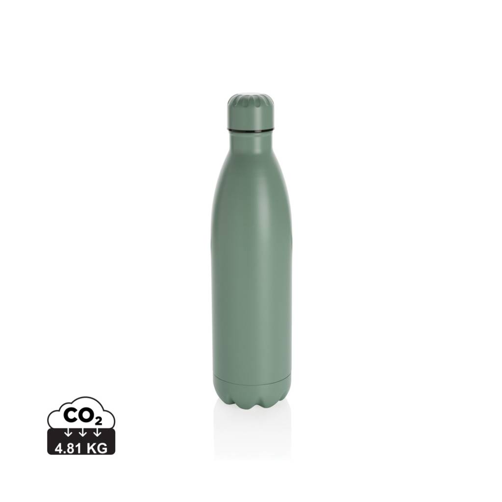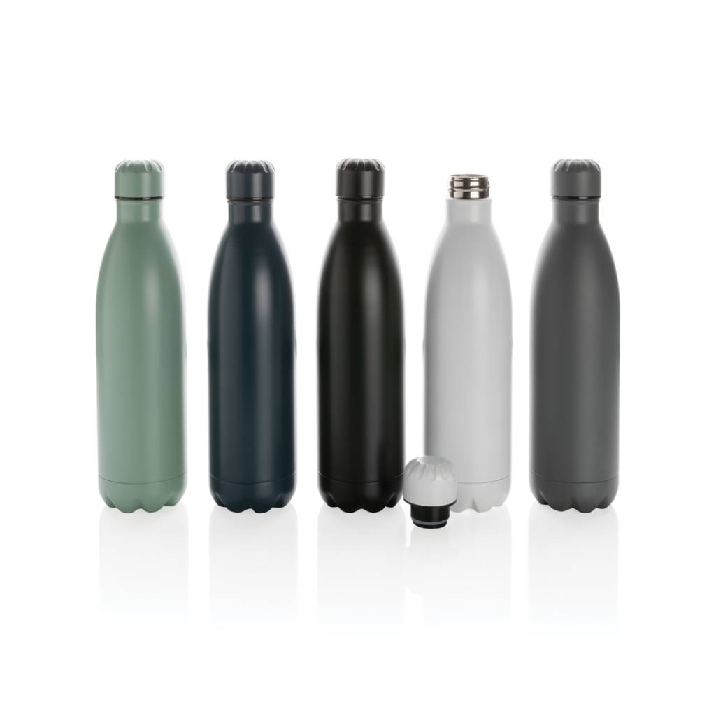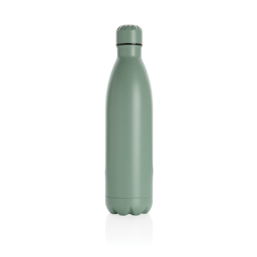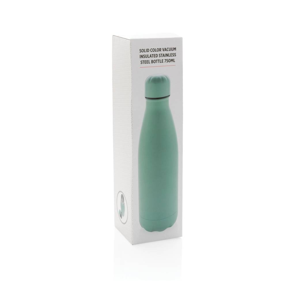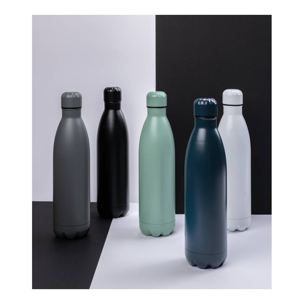 Elevate your daily water intake with this solid colour vacuum insulated stainless steel bottle. The bottle keeps chilled beverages cold for up to 15 hours and hot drinks warm for up to 5 hours. With a base that fits in most cup holders, this sleek looking water bottle will keep you hydrated on the go wherever you are. Capacity 750ml.