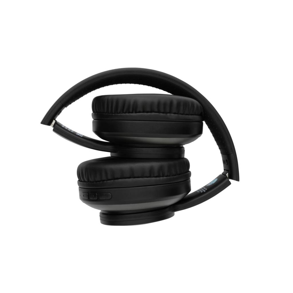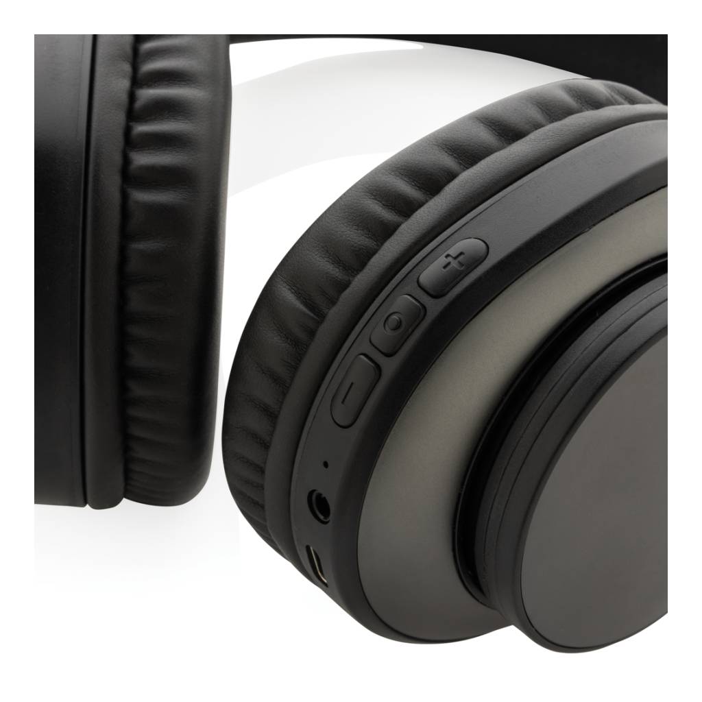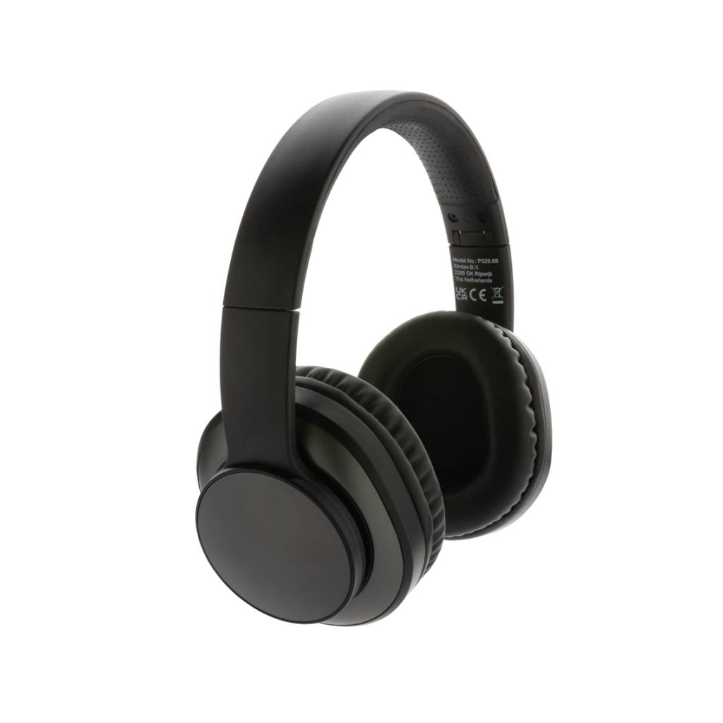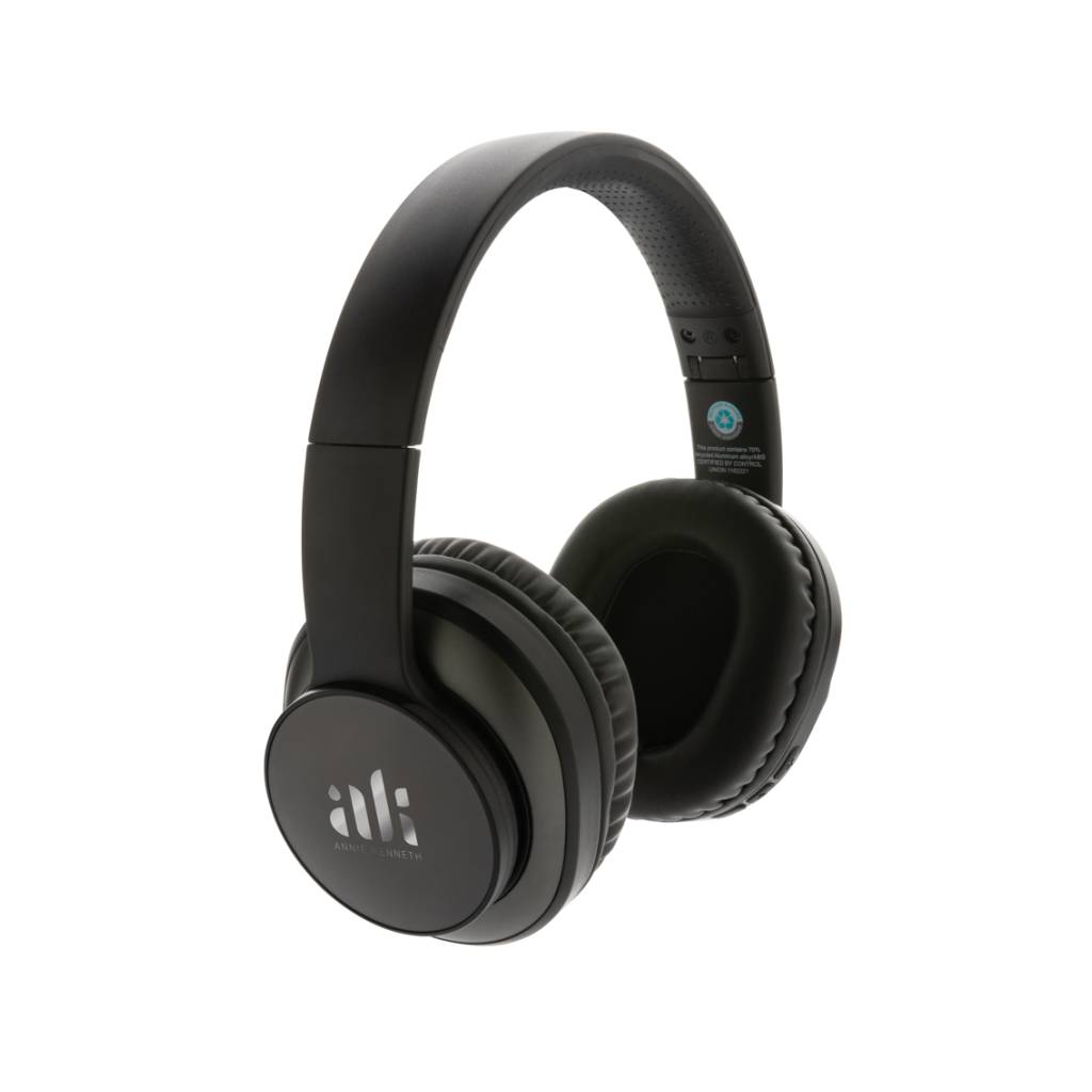 Foldable wireless headphone and strong bass. Made with RCS (Recycled Claim Standard) certified recycled aluminium and ABS. Total recycled content: 70% based on total item weight. RCS certification ensures a completely certified supply chain of the recycled materials. Aluminium does not lose its characteristics in the recycling process and can be recycled endlessly. Including recycled type C charging cable made from RCS certified recycled aluminum, TPE and PET. The 600 mah battery allows a playtime up to 15 hours and can be fully re-charged in 2 hours. With BT 5.3 for smooth connection up to 10 metres. Packed in FSC® mix packaging. Item and accessories 100% PVC free. With MIC to answer calls.