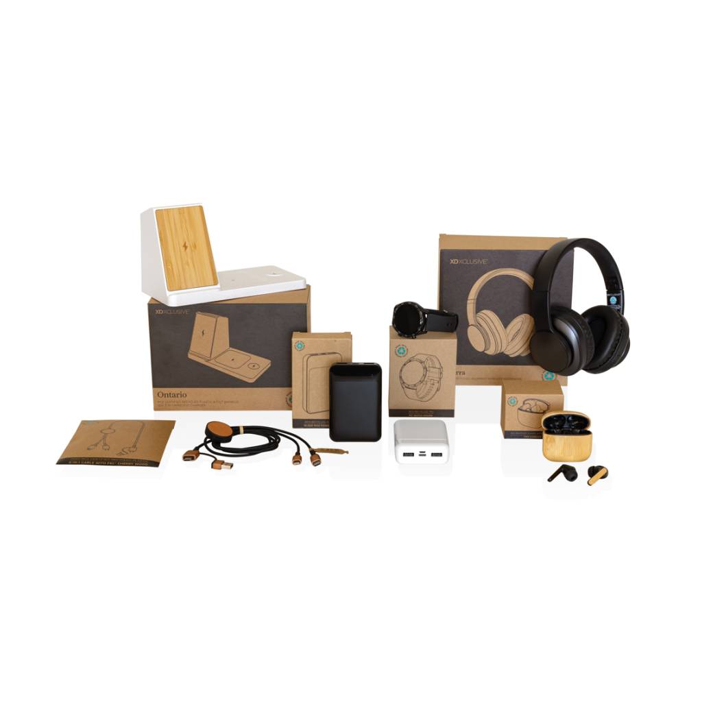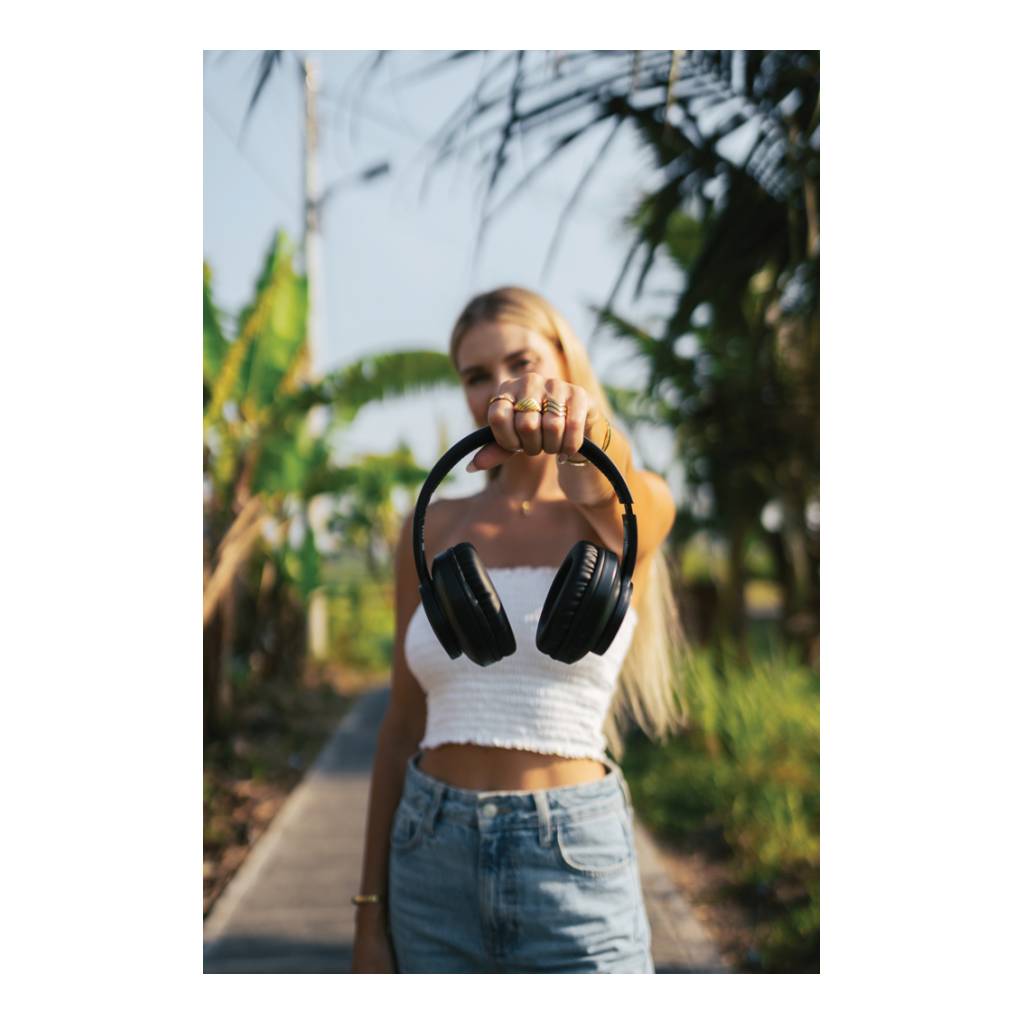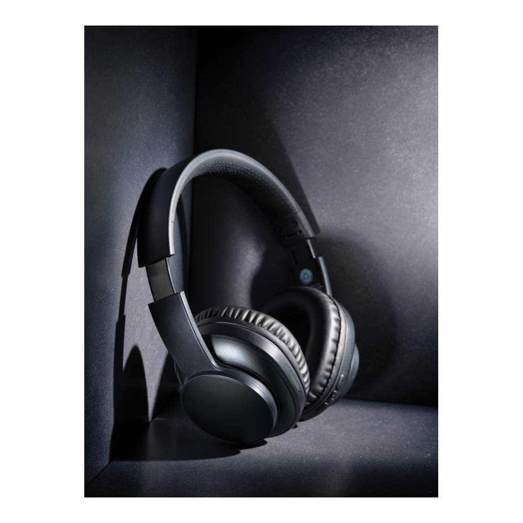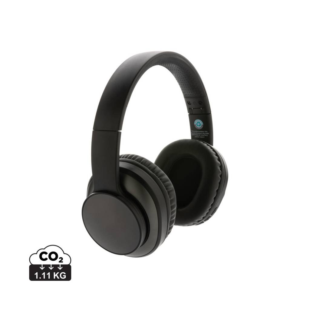 Foldable wireless headphone and strong bass. Made with RCS (Recycled Claim Standard) certified recycled aluminium and ABS. Total recycled content: 70% based on total item weight. RCS certification ensures a completely certified supply chain of the recycled materials. Aluminium does not lose its characteristics in the recycling process and can be recycled endlessly. Including recycled type C charging cable made from RCS certified recycled aluminum, TPE and PET. The 600 mah battery allows a playtime up to 15 hours and can be fully re-charged in 2 hours. With BT 5.3 for smooth connection up to 10 metres. Packed in FSC® mix packaging. Item and accessories 100% PVC free. With MIC to answer calls.