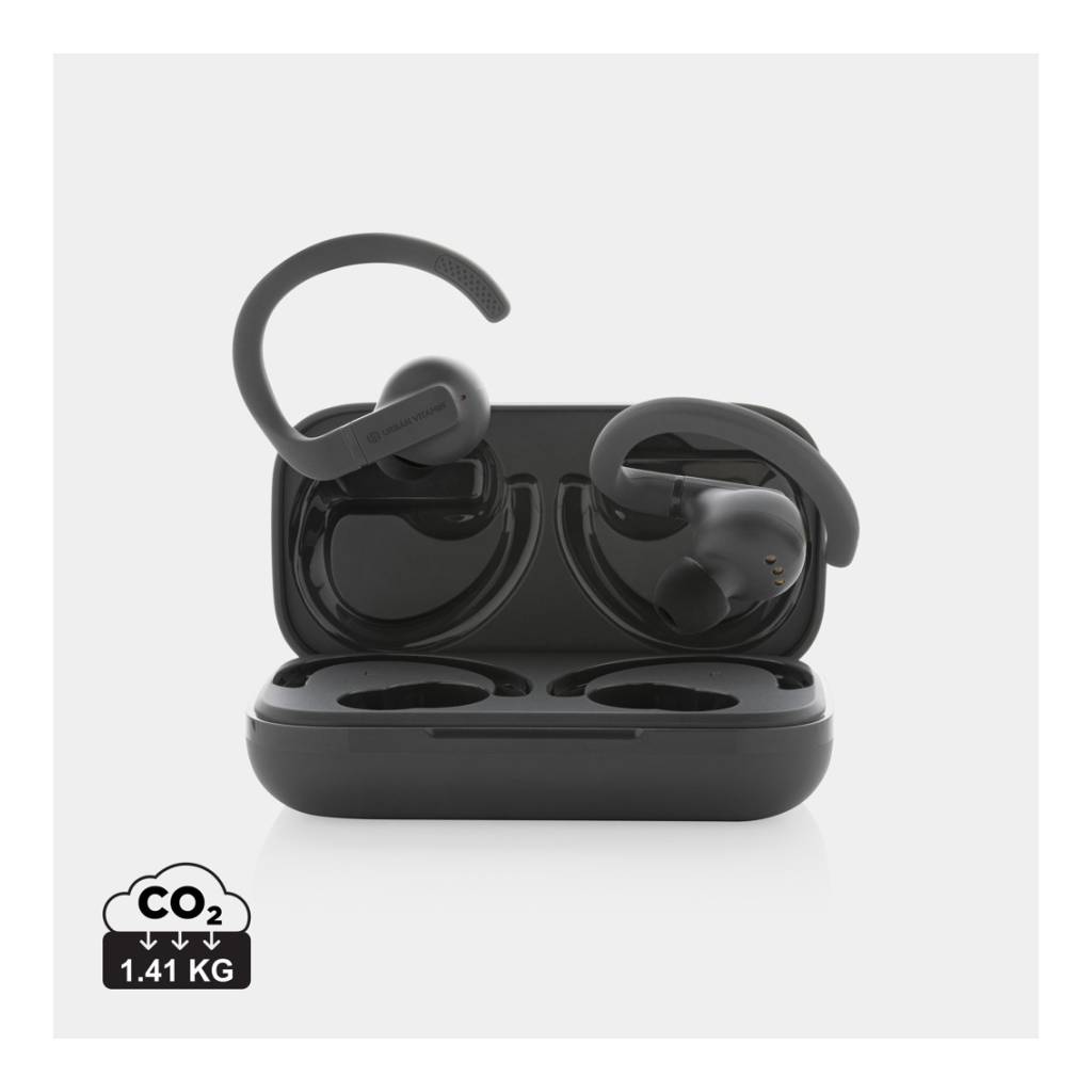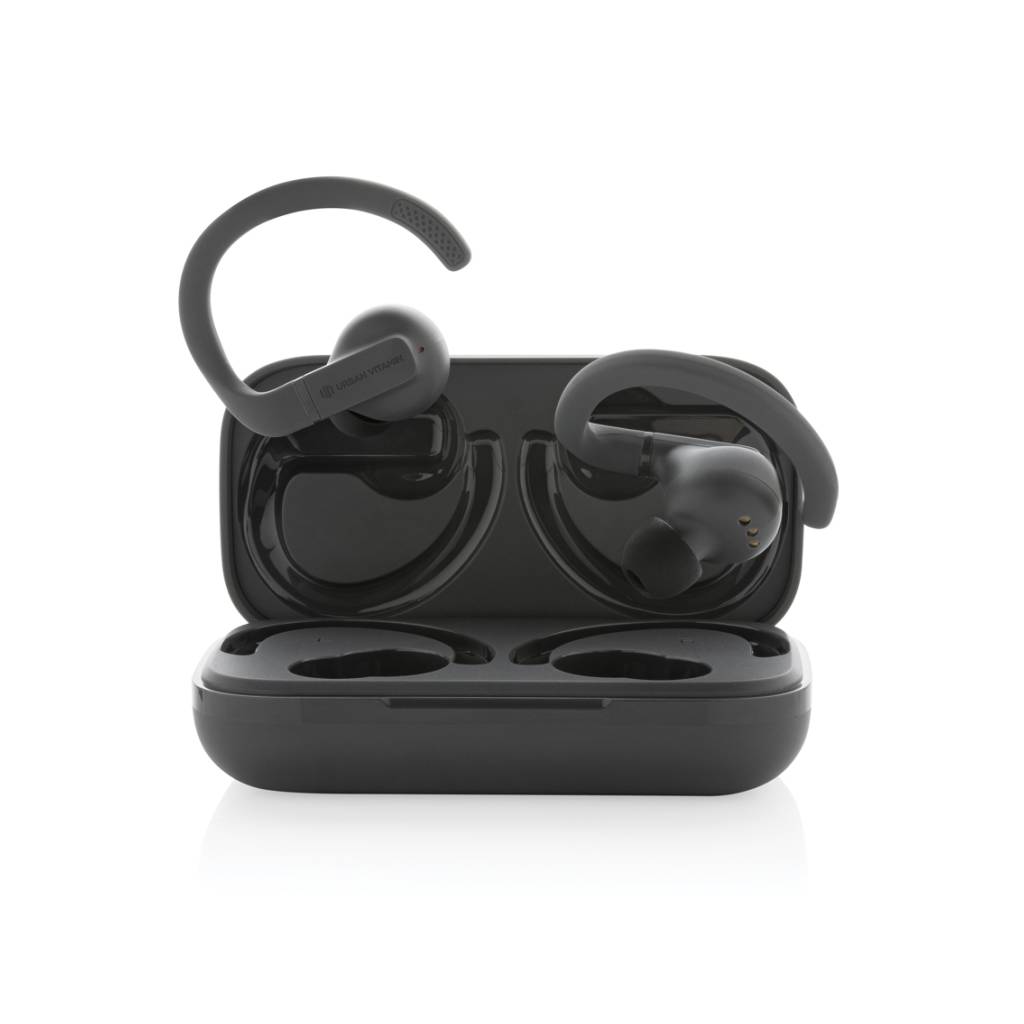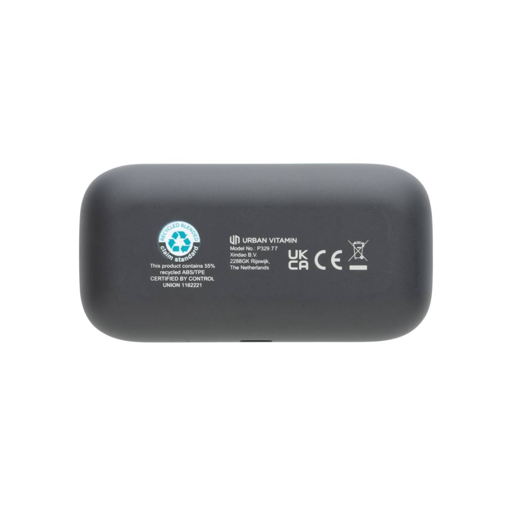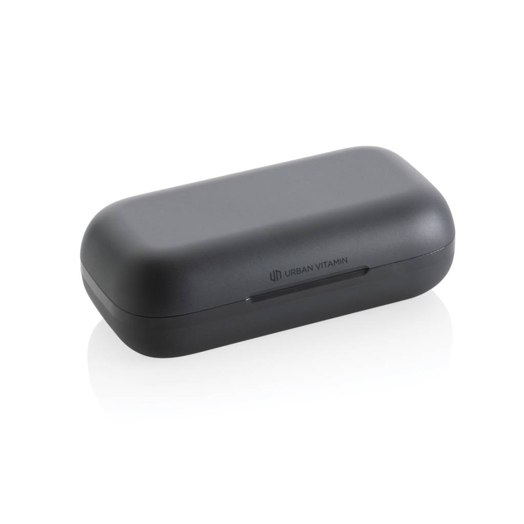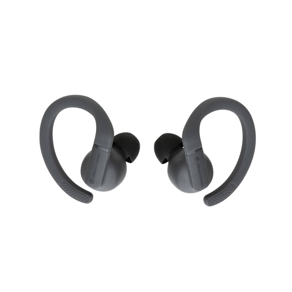 Outperform yourself and take your fitness to the next level with these perfect fit work out earbuds. The customisable, perfect fit ear hooks are adjustable with multiple ear tip options for extended comfort, and are made to stay in place, no matter how intense your workout is. These lightweight earbuds are built for peak performance with a sturdy design for IPX5-rated sweat, dust and water resistance. With up to 8 hours hours of listening time due to advanced BT 5.3 in each earbud and powerful, balanced sound, you’ll always have your music to motivate you. The earbuds and 600 mah charging case are made with made with RCS (Recycled Claim Standard) certified recycled ABS/TPE. Total recycled content: 55 % based on total item weight. RCS certification ensures a completely certified supply chain of the recycled materials. The earbuds can be re-charged 3 times fully in the charging case. Urban Vitamin items are made without PVC and packed in in plastic reduced packaging.
