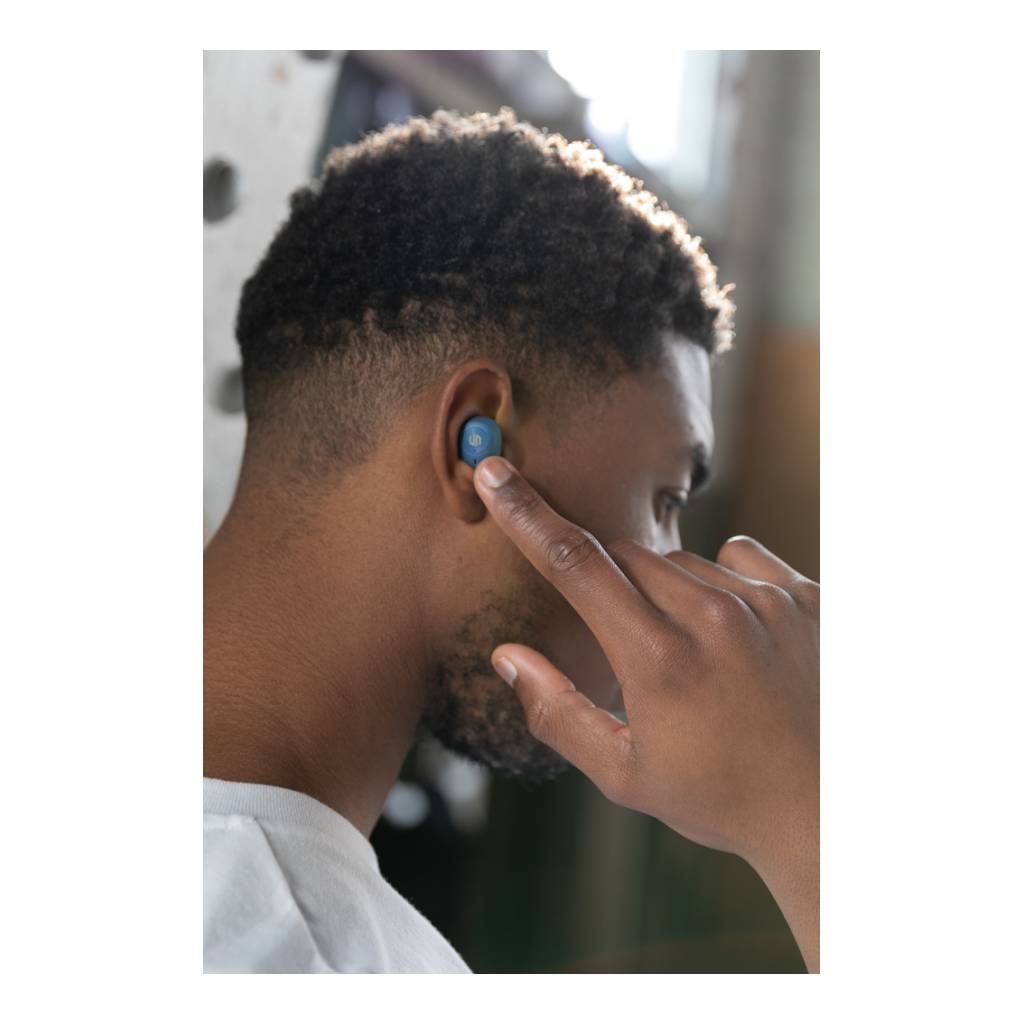 When you open the case and put in the earbuds, the sound hits you. The earbuds and portable charging case are designed to be able to carry no matter where you go and fit easily into your pocket. The comfortable earbuds have up to 6 hours of listening time and the charging case allows up to 20 hours of playback. Enough to keep you going all day! When receiving a call simply answer it in stereo sound thanks to the ENC integrated microphone for perfect calling quality. The IPX 4 rating makes the earbuds weather proof so no worries to take them outside. Earbuds and charging case made with RCS (Recycled Claim Standard) certified recycled ABS. Total recycled content: 55 % based on total item weight. RCS certification ensures a completely certified supply chain of the recycled materials. Urban Vitamin items are made without PVC and packed in plastic reduced packaging.