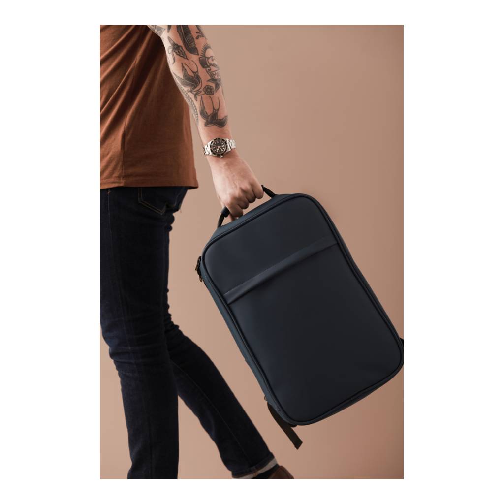 This backpack comes in a minimalistic and modern design and has handy organizational capacities, ensuring that you can fully utilize all of its space. There is a padded compartment for the computer and a hidden pocket on the back for safe storage of the valuables. The backpack’s handy size, adjustable straps and well-planned compartments make it easy for you to carry everything that you need on the go. A perfect companion for short trips or nightovers. Made of PU which gives the bag its water-repellent properties.Suitable for computers with an overall size of 17 inches. Please note that the dimensions of the display are not the same as the dimensions of the entire computer.