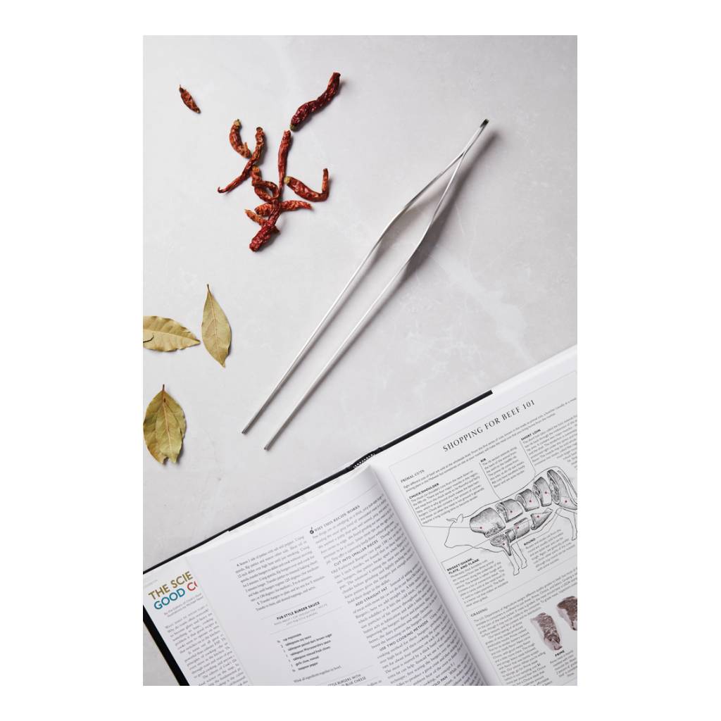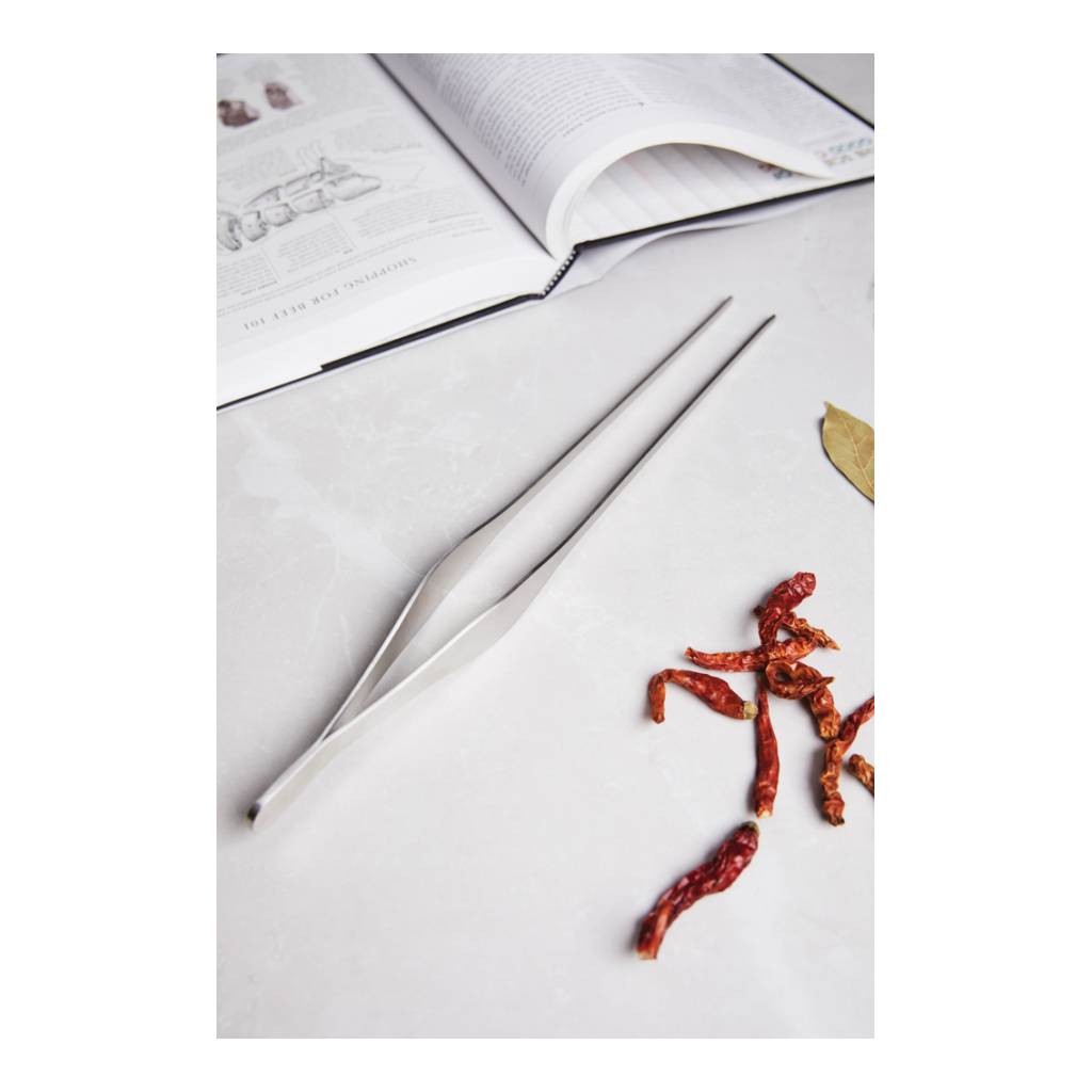 Cooking tong made of stainless steel, easy to use for different sizes of food. The ribbed inside of the tweezer top increases the friction which improves your grip.