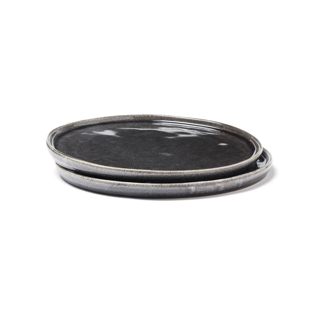 Set of two stoneware plates. Nomimono draws its inspiration from nature and the earth around us, creating this rustic range in natural earth tones where no two items are the same. Japanese meets Scandinavian, rustic meets modern. Collectibles for a down-to-earth and inspiring serving. Each item is handmade and unique. Every item is glazed three times to obtain the right kind of finish. Dishwasher safe.