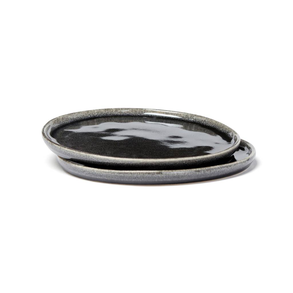 Set of two stoneware plates. Nomimono draws its inspiration from nature and the earth around us, creating this rustic range in natural earth tones where no two items are the same. Japanese meets Scandinavian, rustic meets modern. Collectibles for a down-to-earth and inspiring serving. Each plate is handmade and glazed three times in order to obtain the right kind of finish. It makes each item completely unique. Dishwasher and microwave safe.
