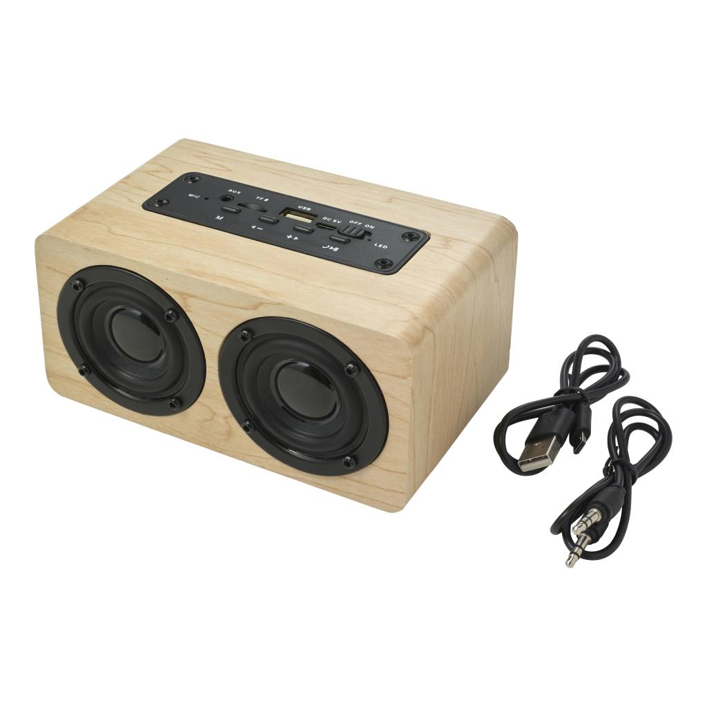 Wooden speaker with wireless technology and double speakers of 5W each. Battery life up to 3-4 hours. Including USB-Micro USB cable.