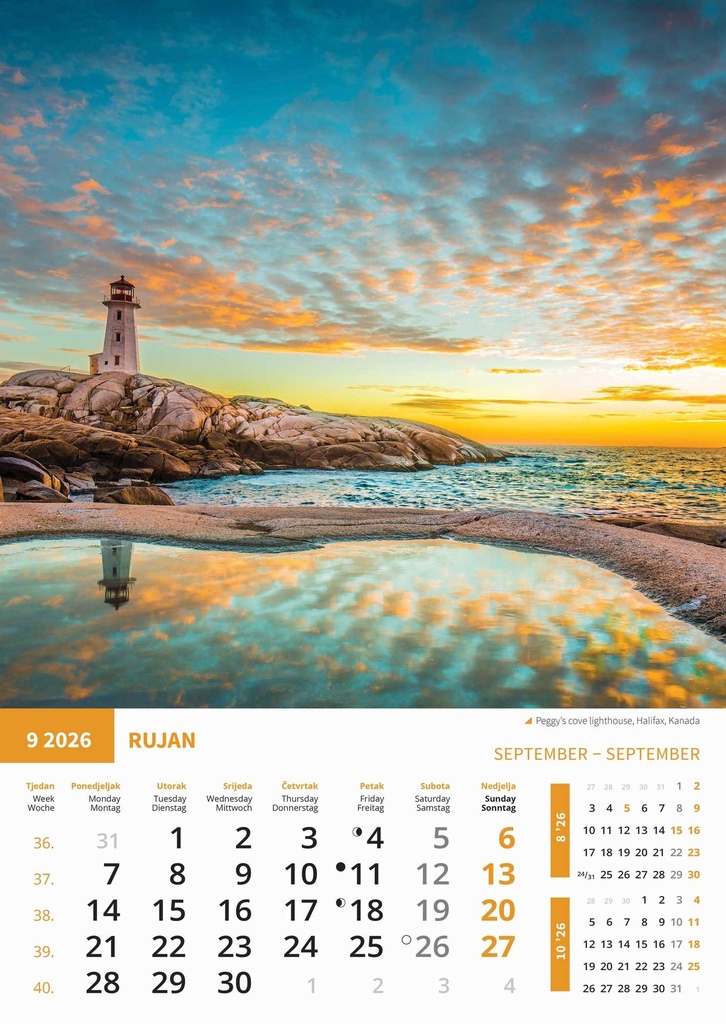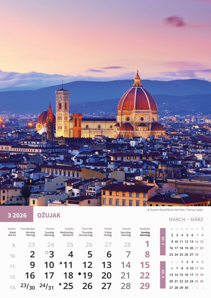 Scope: 13 sheets / Dimensions: 30.5 x 50 cm / Space for printing: 30.5 x 7 cm / Description: Quarterly calendar, bag / Languages: HR, GB / Paper type: KD 135 g/m² sheets, 350 g/m² base / Binding: Spiral / Packaging: 50 pcs