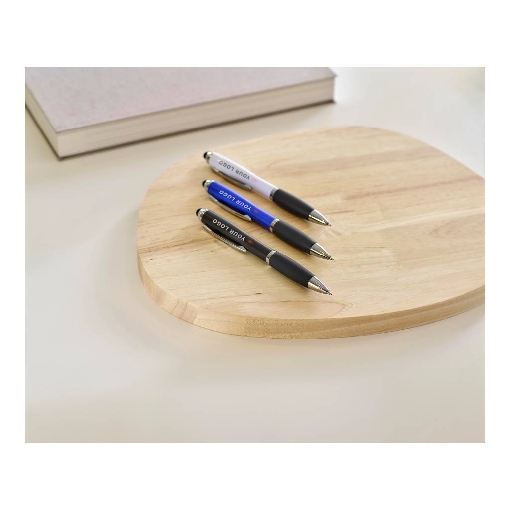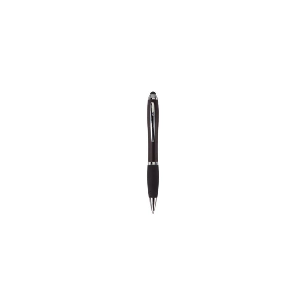 ABS i metalna kemijska olovka s gumenim držačem i gumenim vrhom pogodna za kapacitivne ekrane. Crna tinta.