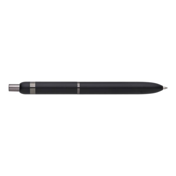 Roler olovka od aluminija i mesinga. Sa sjajnim detaljima na kopči, prstenu i gumbu. Plava tinta. Pojedinačno pakirano u magnetsku poklon kutiju s papirnatim omotom.