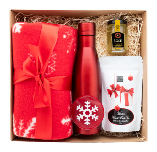 Poklon set za alkoholna pića u poklon kutiji od kraft kartona s punjenjem od drvene vune i crvenom vrpcom. Uključujući: "Gravning" bodicu; džepni nož "Angus"; “Chargelight Zoom” punjiva svjetiljka; “Luis” hrskavi slani bademi (70 g).