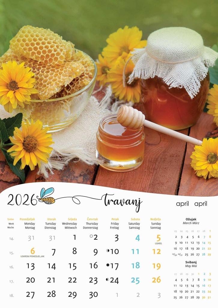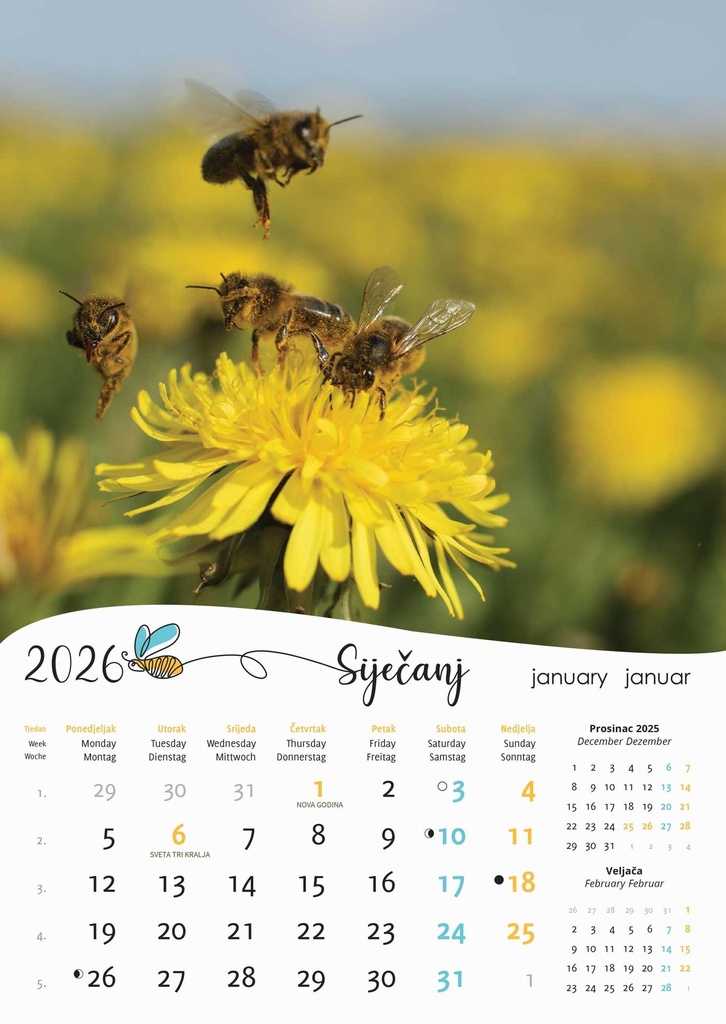 “PČELE” 13 list., dim: 30,5×50 cm, PVC vrećica, P/50, kalendar u boji