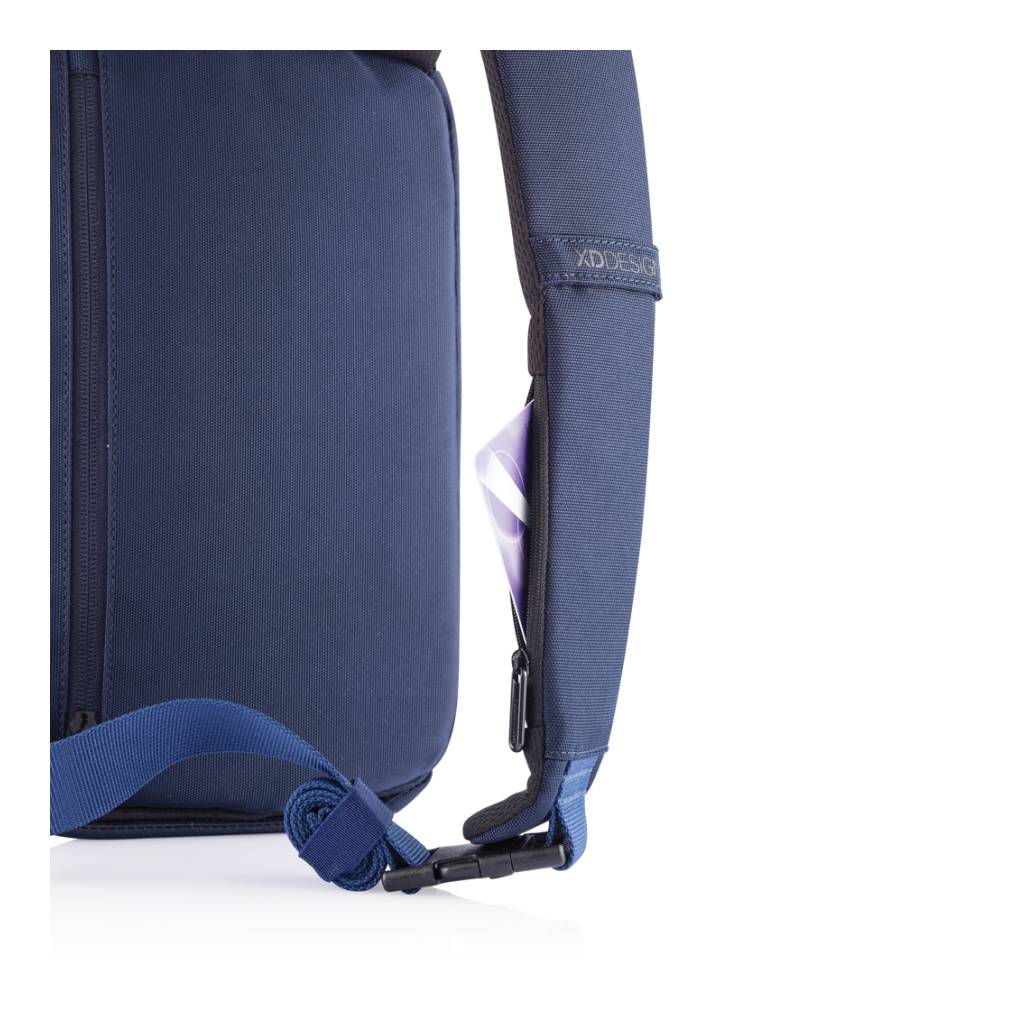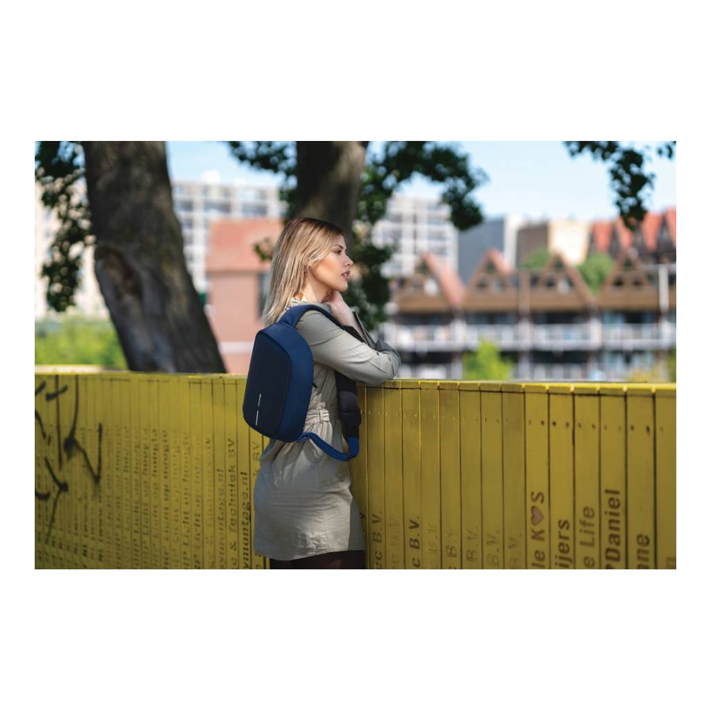 Siguran, udoban i pametan, Bobby Sling dizajniran je za gradske putnike. Osjećajte se zaštićeno s poznatim Bobby značajkama protiv krađe kao što su skriveni patentni zatvarači, bez prednjeg pristupa, RFID zaštićeni džep i materijal otporan na posjekotine. Tu je i sigurnosno kopčanje u 3 točke, osiguravajući da su vaše dnevne stvari uvijek uz tijelo. Dodatne značajke poput vodootpornog materijala i integriranog USB priključka za punjenje čine ovaj ruksak preko ramena najprikladnijom opcijom za vaše svakodnevno putovanje. Izrađena od R-pet tkanine s AWARE™ tracerom. Uz AWARE™, zajamčena je upotreba originalne reciklirane tkanine. 37% Reciklirani sadržaj. Registrirani dizajn®