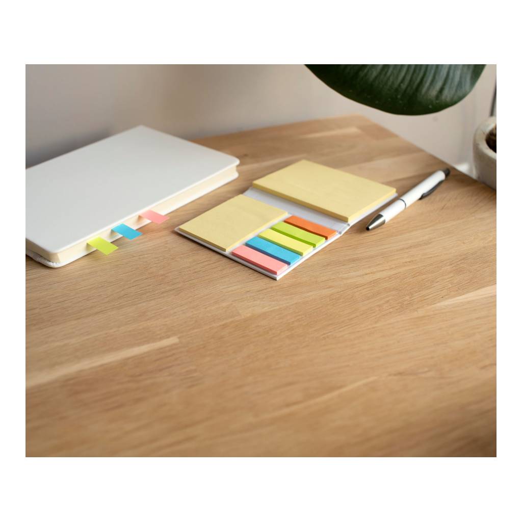 Kartonska knjižica s jednim blokom većih ceduljica, 50 listova, jednim blokom srednjih ceduljica, 25 listova i 5 boja malih ceduljica, 25 listova po boji.