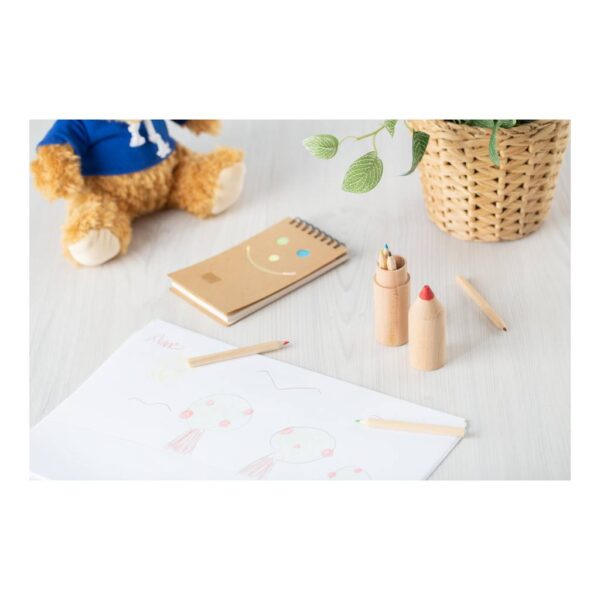 Kartonska tuba sa šest olovaka u boji, šest bojica i šiljilom.