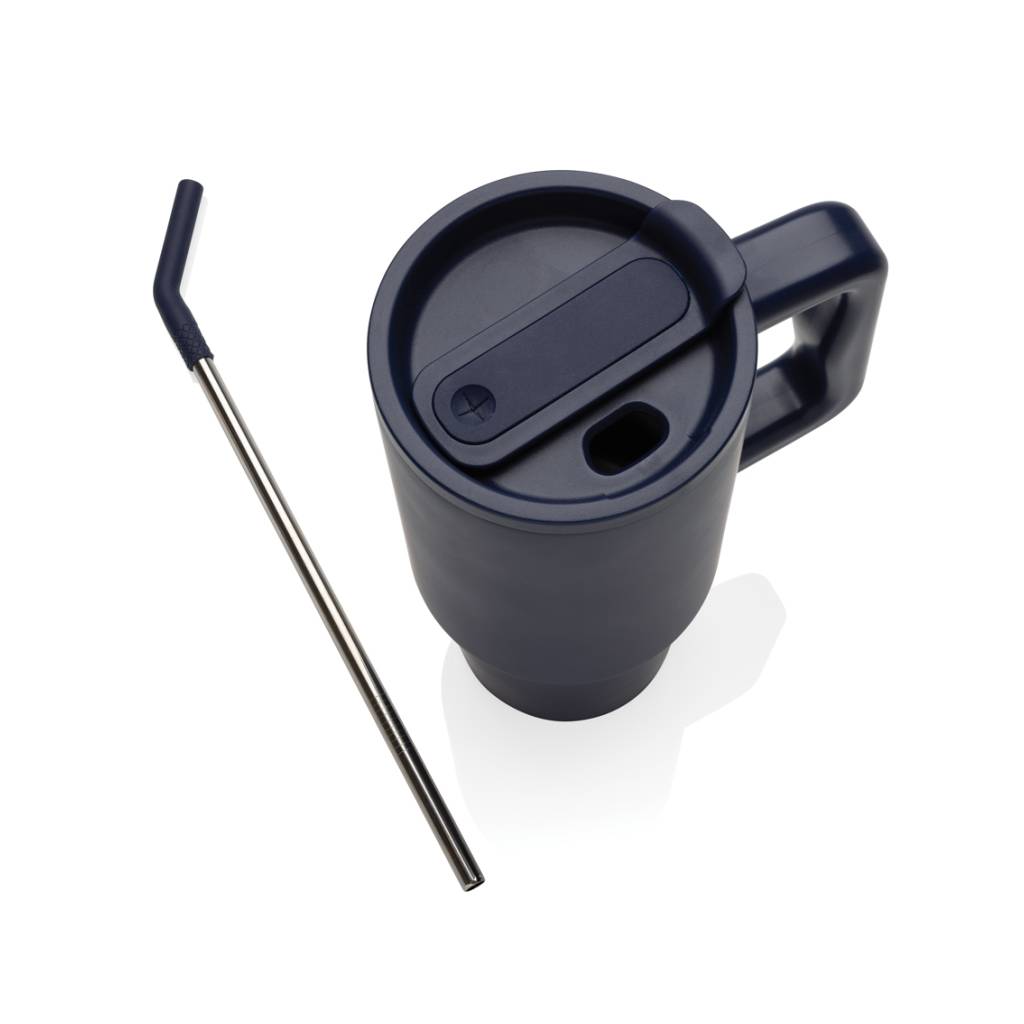 Doživite prostrani, ali praktično prijenosni zagrljaj naše velikodušno velike čaše - ni prevelike, ni premale. Njegova udobna ručka i tanko postolje čine ga savršenim za većinu držača za čaše, osiguravajući da ostanete osvježeni bilo da podnosite dugi dan sastanaka, osvajate tečaj veslanja ili krećete na izlet izvan grada. Izrađen od izdržljivog recikliranog nehrđajućeg čelika, ovaj 900 ml. čaša dorasla izazovu hidratacije. Ova vakuumski izolirana čaša s dvostrukim stijenkama dolazi u kompletu s poklopcem koji osigurava zaštitu od prolijevanja, slamkom od recikliranog čelika i silikonskim vrhom slamke. Poklopac na navoj ima dvostruku funkciju, nudi praktičan izljev za piće ili opciju korištenja slamke. Preporučujemo ručno pranje. RCS certifikat osigurava potpuno certificirani opskrbni lanac recikliranih materijala. Ukupni reciklirani sadržaj: 70% na temelju ukupne težine predmeta. Bez BPA.