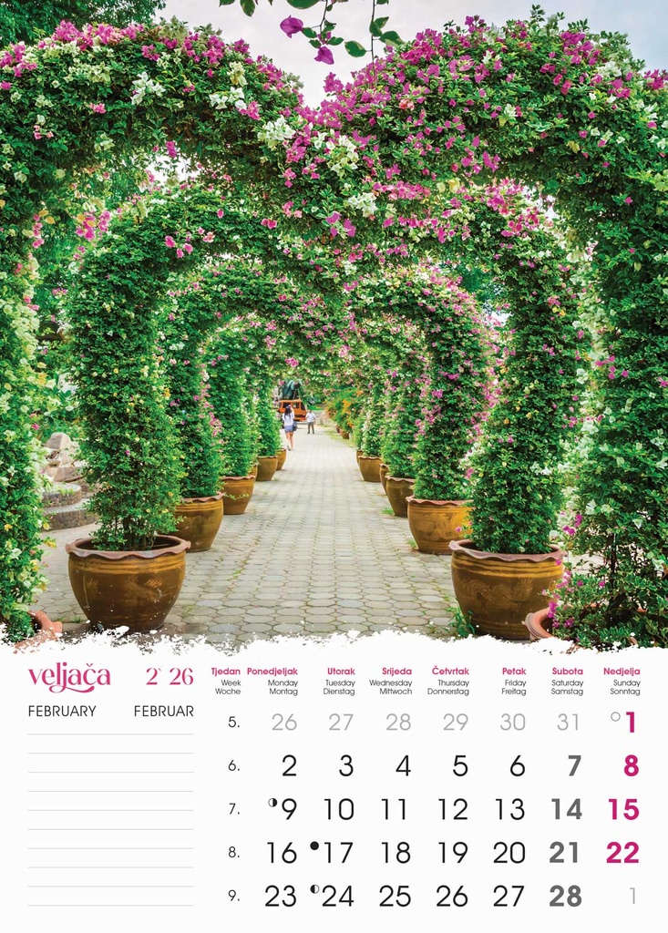 “VRTOVI” 13 list., dim: 24×53,5 cm, PVC vrećica, P/50, color kalendar