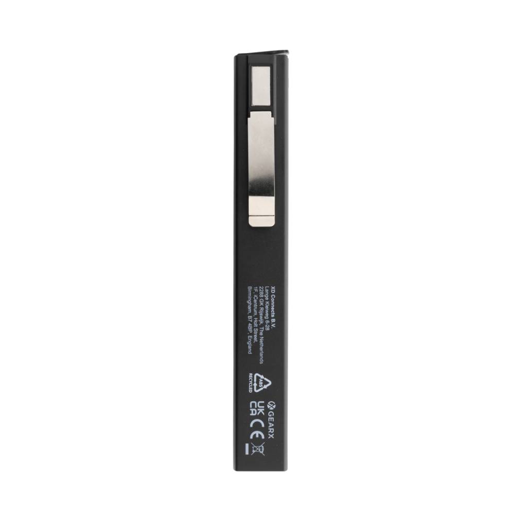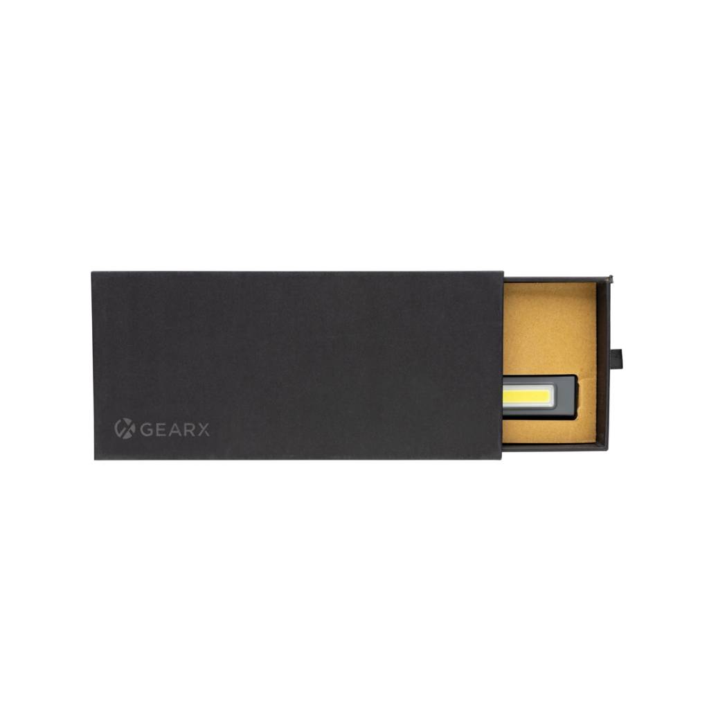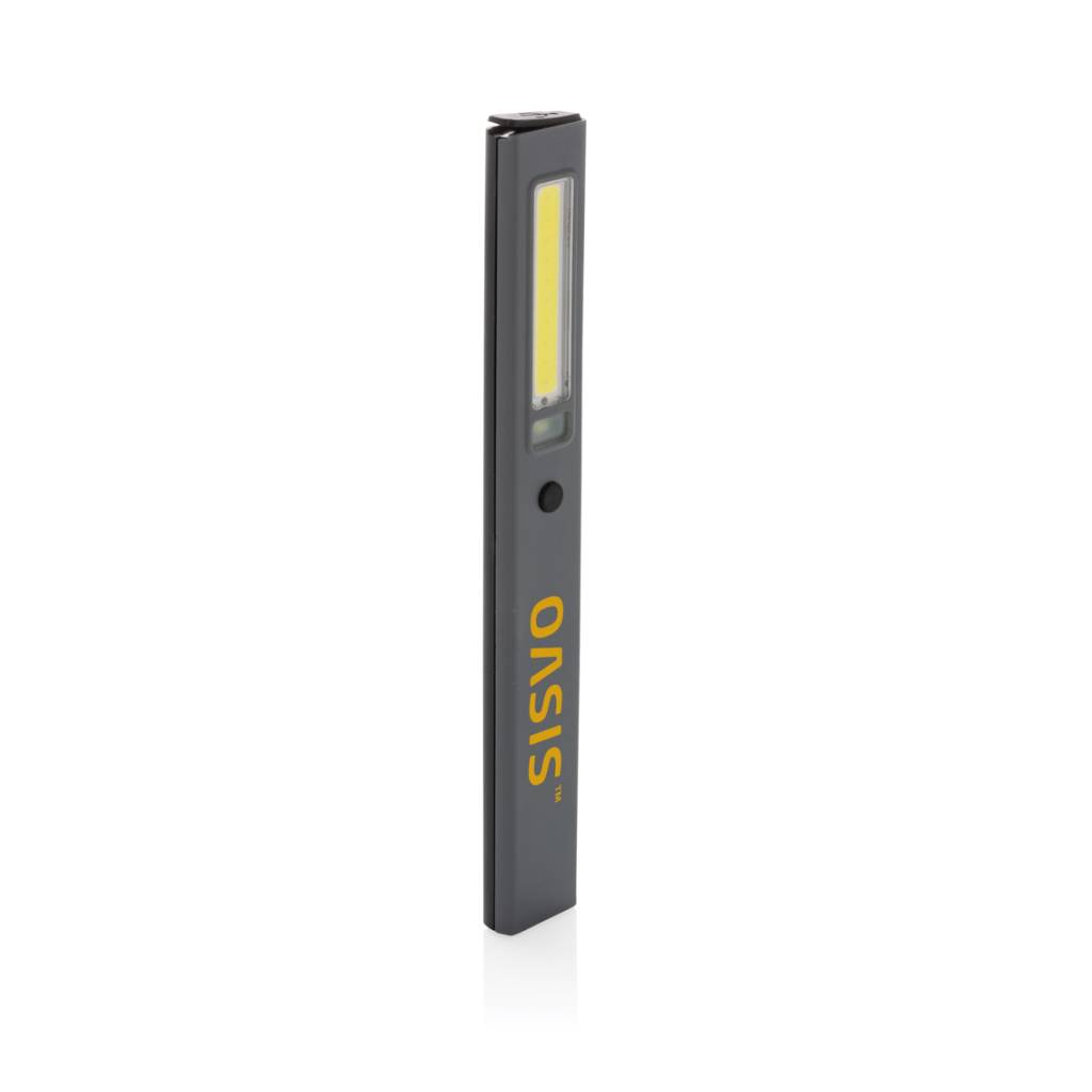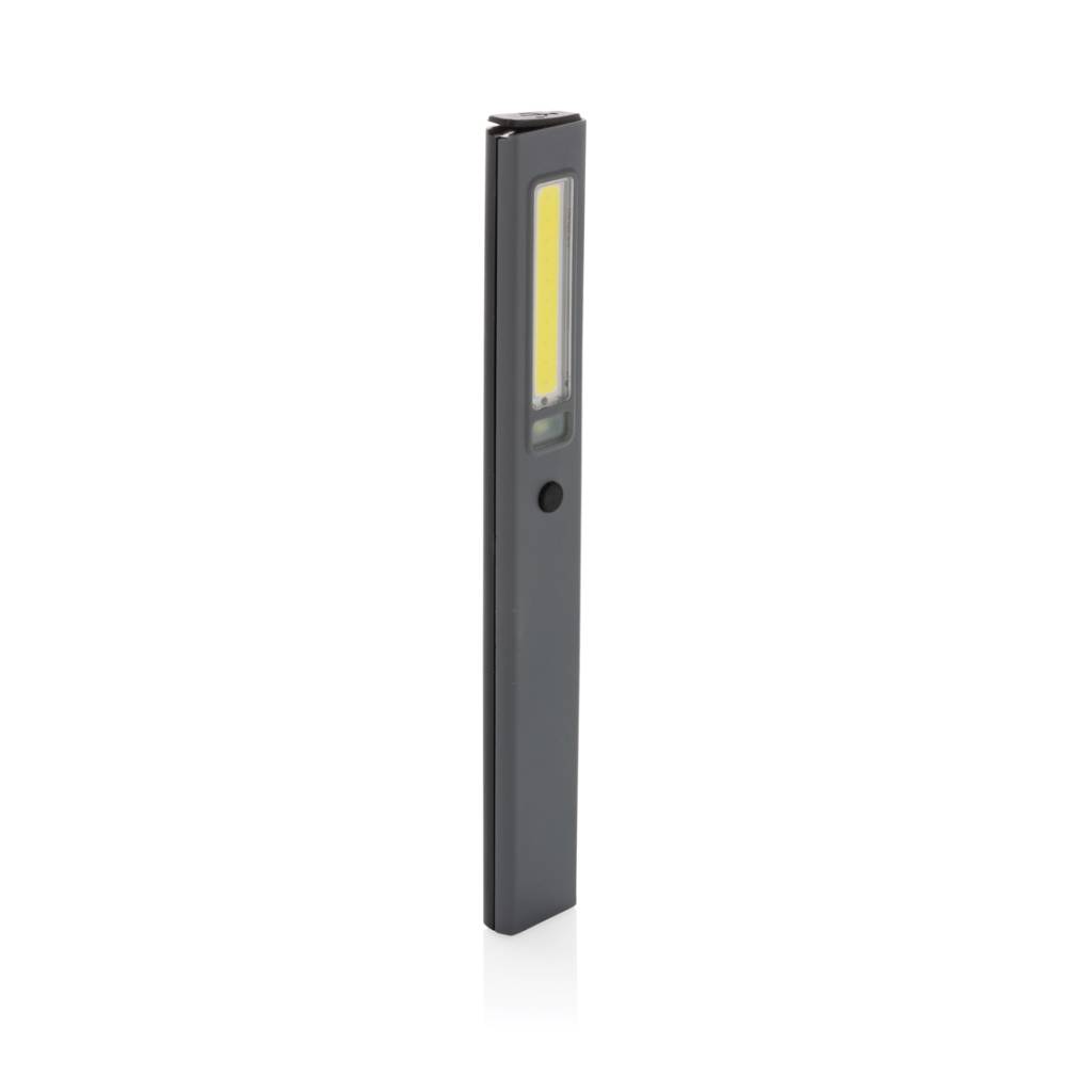 Inspekcijska lampica džepne veličine izrađena od reciklirane ABS plastike s RCS certifikatom. Ukupni reciklirani sadržaj: 33% na temelju ukupne težine predmeta. RCS certifikat osigurava potpuno certificirani opskrbni lanac recikliranih materijala. Radno svjetlo koristi punjivu litijsku bateriju razreda A od 520 mah tako da nema potrebe za zamjenom baterija. Jednostavno ponovno napunite putem svoje USB utičnice. Radno svjetlo dolazi s COB svjetlom od 220 lumena i LED svjetlom od 80 lumena. S 3 načina rada: LED, COB i COB crveni. S kopčom za pričvršćivanje na remen ili džep i magnetom. S priključkom tipa C za ponovno punjenje. Vrijeme rada s jednim punjenjem: 3 sata.