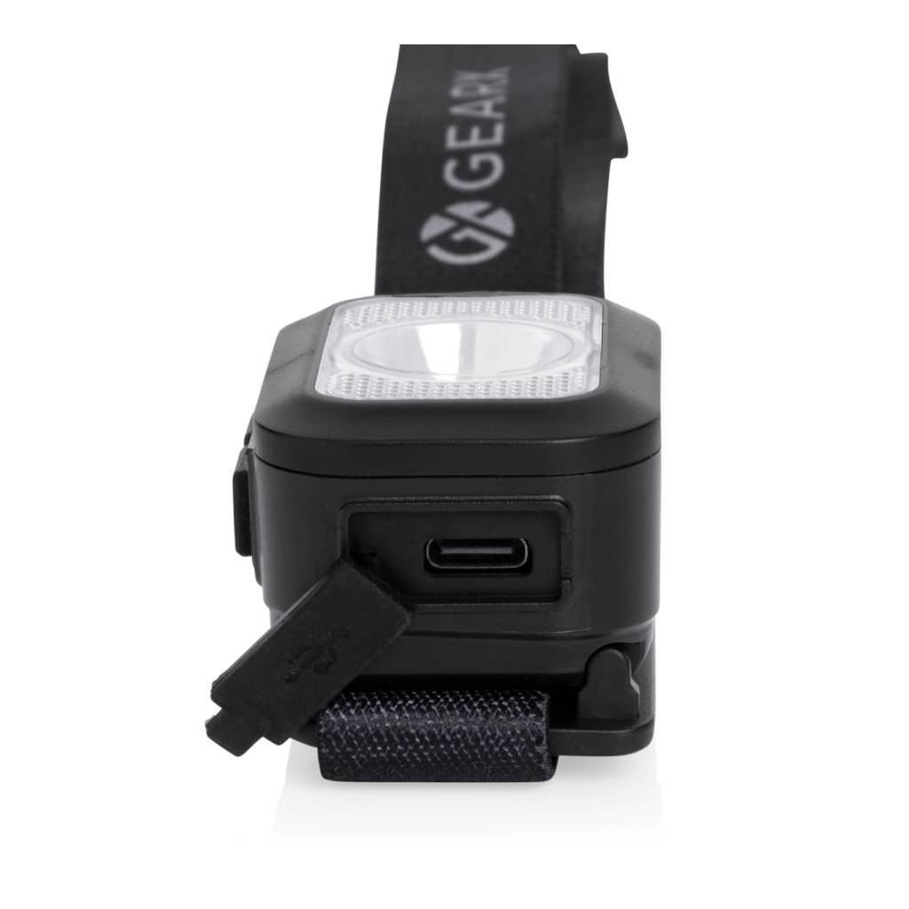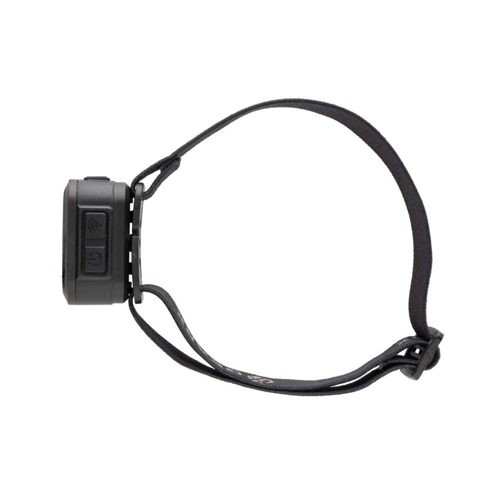 Naglavna svjetiljka za teške uvjete rada s integriranim COB-om velike snage i LED svjetlom. Glavna svjetiljka može proizvesti do 250 lumena i ima domet snopa od 70 metara. Kućište naglavne svjetiljke izrađeno je od reciklirane ABS plastike s RCS certifikatom. RCS (Recycled Claim Standard) standard je za provjeru recikliranog sadržaja proizvoda u cijelom opskrbnom lancu. Ukupni reciklirani sadržaj: 23 % na temelju ukupne težine predmeta. Glavna svjetiljka je IPX4 vodootporna i otporna na prašinu. S podesivom trakom za glavu koja odgovara svim veličinama. Naglavna svjetiljka ima punjivu litijevu bateriju od 800 mAh koja omogućuje 3 sata neprekidnog korištenja s jednim punjenjem. Sa 6 načina rada svjetla koji uključuju 100%-50% i SOS način rada. Ponovno punjenje je jednostavno putem tipa C.