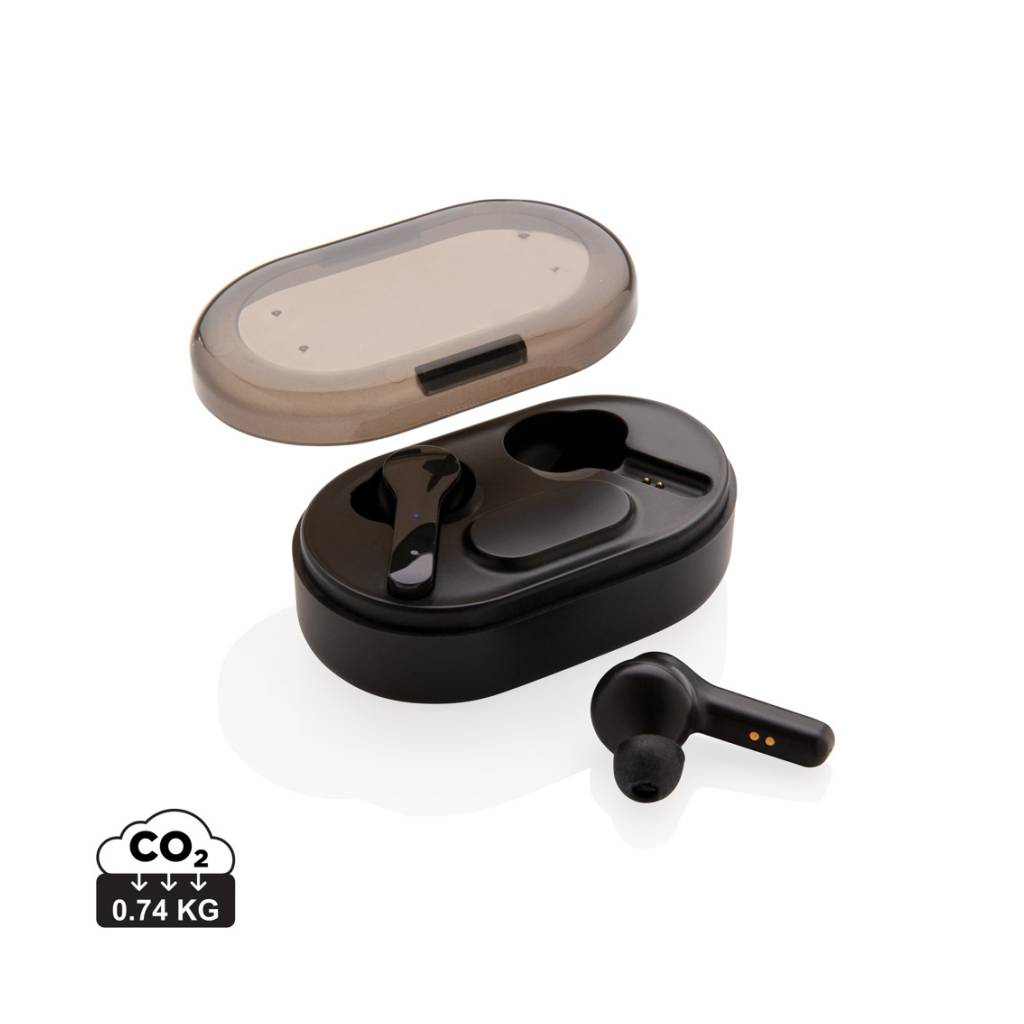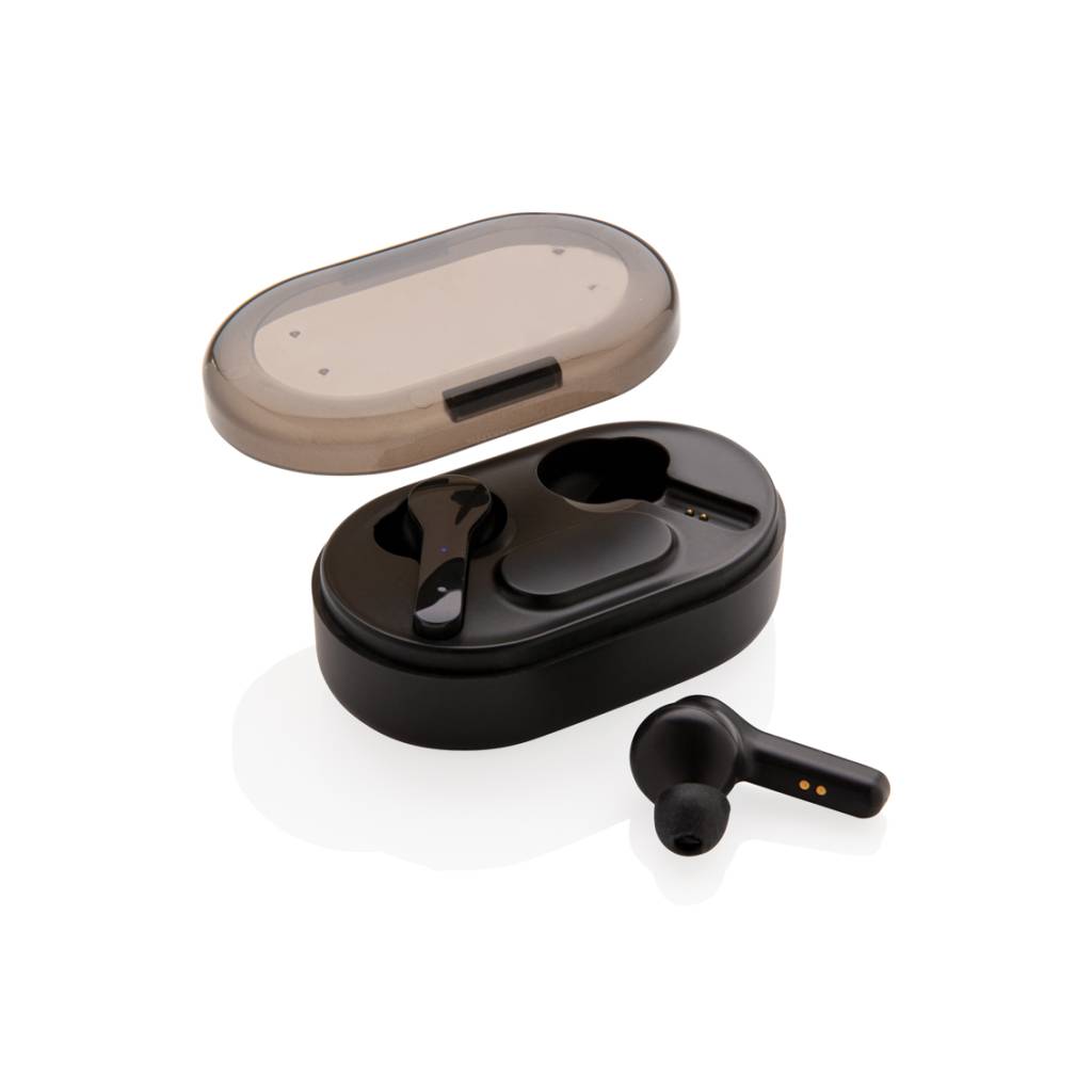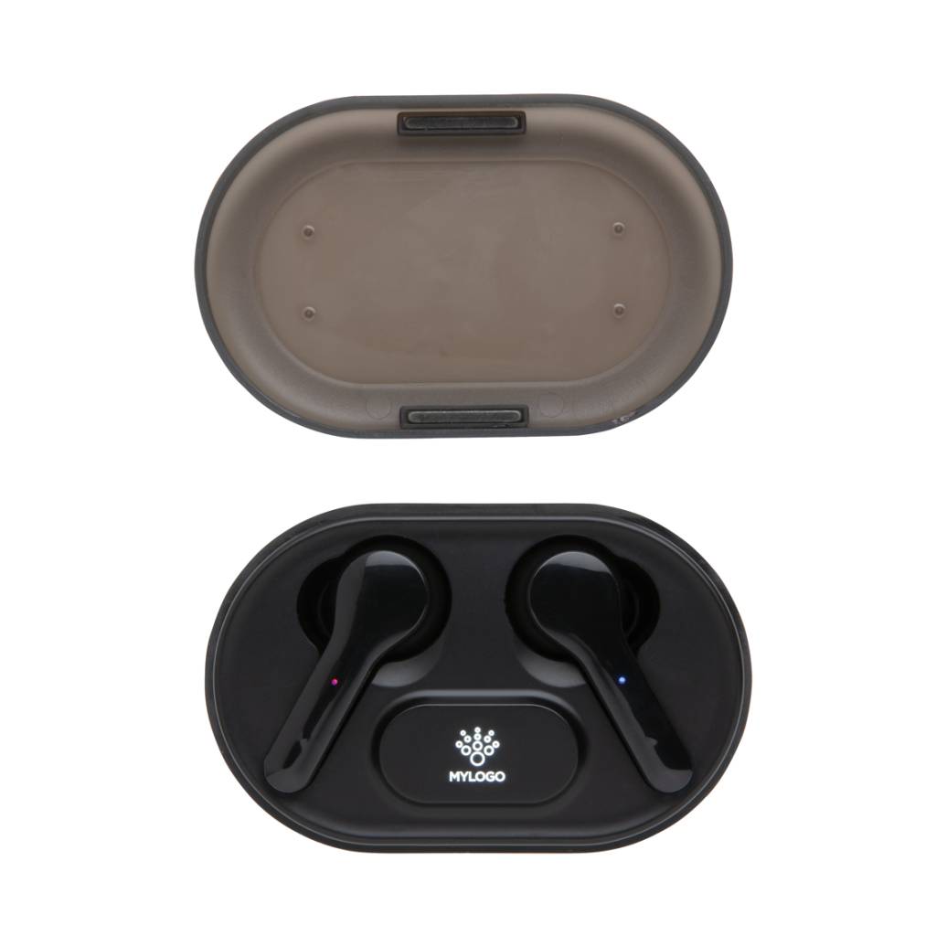 Vrhunska sloboda slušanja glazbe s mobilnog uređaja. Ove TWS slušalice dolaze u kućištu za bežično punjenje od 300 mAh s dodatnom opcijom za dodavanje logotipa koji će svijetliti kada se kućište puni. Slušalice se ponovno pune za 1,5 sat i imaju vrijeme reprodukcije do 3 sata. BT 5.0 za automatsko uparivanje s vašim mobilnim uređajem i uparivanje slušalica. Radna udaljenost do 10 metara. Uključujući TPE mikro usb kabel bez PVC-a za ponovno punjenje kućišta za punjenje. S funkcijom preuzimanja za odgovaranje na pozive. Uključujući 3 veličine ušica za uši koje odgovaraju svima.