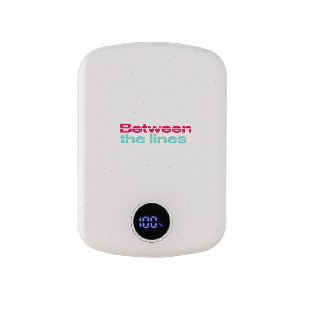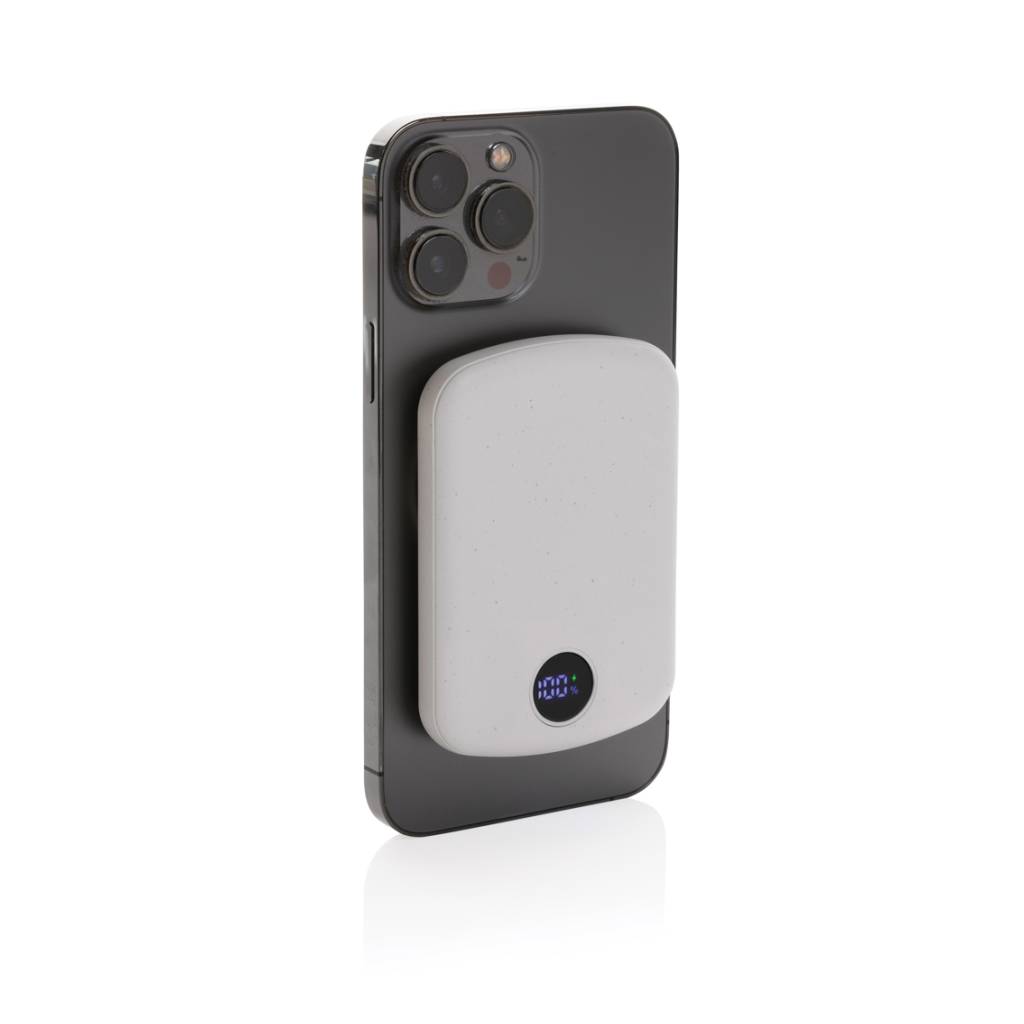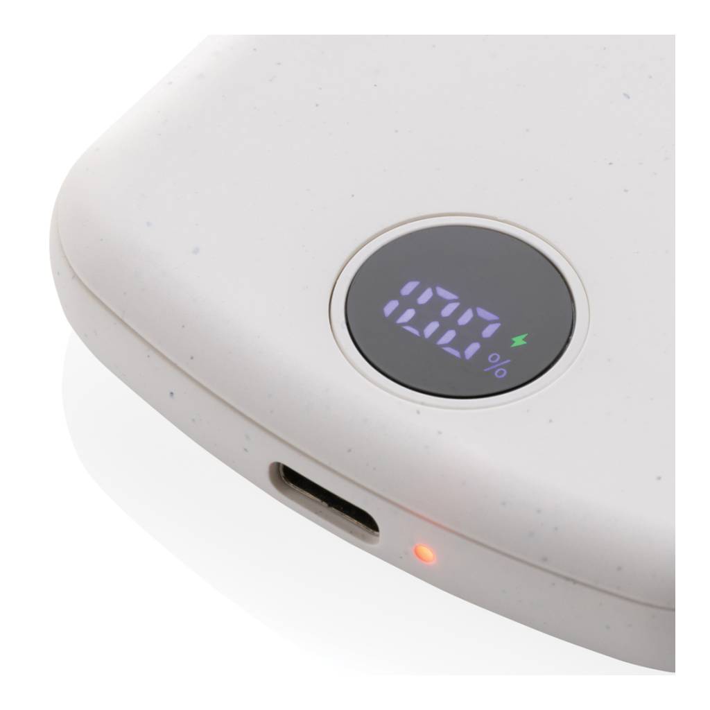 Powerbank džepne veličine od 5000 mAh s magnetskim bežičnim punjačem od 15 W s kućištem izrađenim od reciklirane ABS plastike s RCS certifikatom. RCS (Recycled Claim Standard) standard je za provjeru recikliranog sadržaja proizvoda u cijelom opskrbnom lancu. Ukupni reciklirani sadržaj: 21 % na temelju ukupne težine artikla. Powerbank sadrži dugotrajnu litij-polimersku bateriju razreda A od 5.000 mAh. Integrirani digitalni LED zaslon pokazat će preostalu razinu energije tako da uvijek znate kada ponovno napuniti.; Tip-C ulaz 5V/2,4A; Izlaz tipa C: 5V/2A.4A Artikl i dodaci ne sadrže PVC. Uključujući RCS certificirani reciklirani TPE kabel za punjenje. Pakirano u FSC® mix ambalažu. Tip-C ulaz: 5V/3A 9V/2A 12V/1.5A; Izlaz: USB-C izlaz: 5V/2,4A,9V/2,22A,12V/1,67A; Bežična snaga: 15W