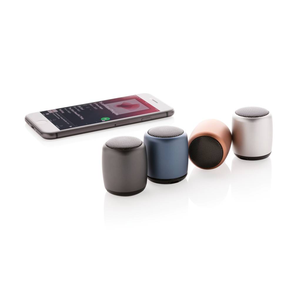 Bežični zvučnik džepne veličine od 3 W s iznenađujuće snažnim zvukom. Izrađen od izdržljivog aluminija. S baterijom od 180 mAh koja omogućuje vrijeme reprodukcije do 3 sata s jednim punjenjem i udaljenost rada od 10 m pomoću BT5.0. Uključujući TPE kabel za punjenje bez PVC-a.