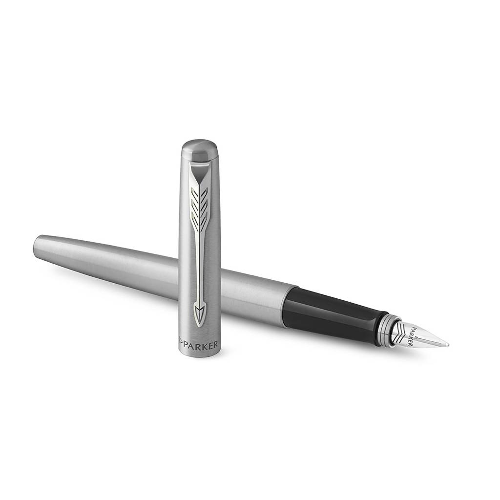 Nalivpero Parker Jotter Core od nehrđajućeg čelika s čepom. Plava tinta. Olovka unaprijed zapakirana u poklon kutiju.