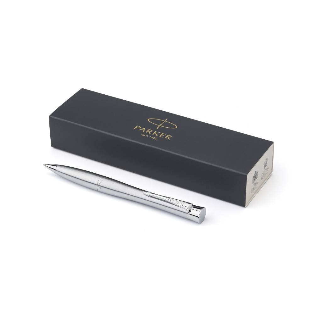 Kromirani mesing i lakirana kemijska olovka Parker Urban. Plava tinta. Uključujući poklon kutiju.