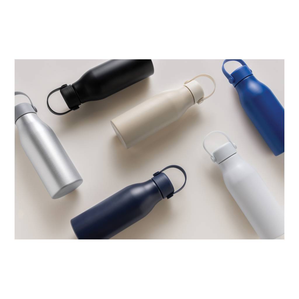 Pluto RCS certificirana reciklirana aluminijska boca za vodu od 680 ml ima konstrukciju s jednom stijenkom i navojnim poklopcem otpornim na curenje. Silikonski remen ugrađen u poklopac dizajniran je kako bi ovaj predmet bio lak za nošenje kada ste u pokretu. Vanjski dio je mat završni. Samo ručno pranje.
