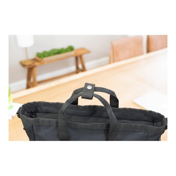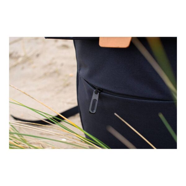 Dvobojni ruksak od poliestera (600D). Dva džepa s patentnim zatvaračem s prednje strane i dva velika pretinca s patentnim zatvaračem s gornje strane, s jednim pretincem za prijenosno računalo. Ruksak je ojačan i uključuje traku za kolica.