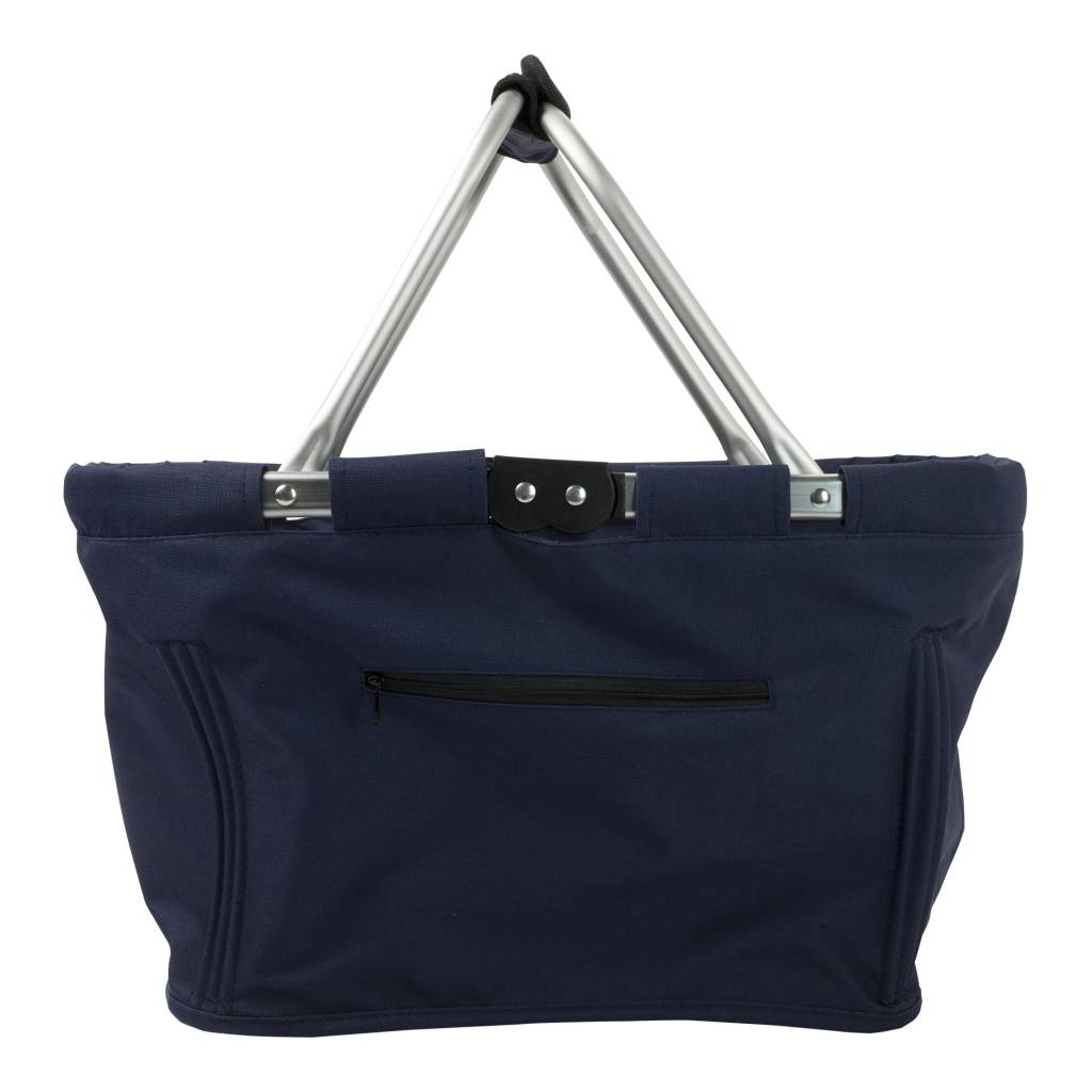 Poliesterska (600D) sklopiva torba za kupovinu s bočnim džepom na patentni zatvarač i aluminijskim okvirom.