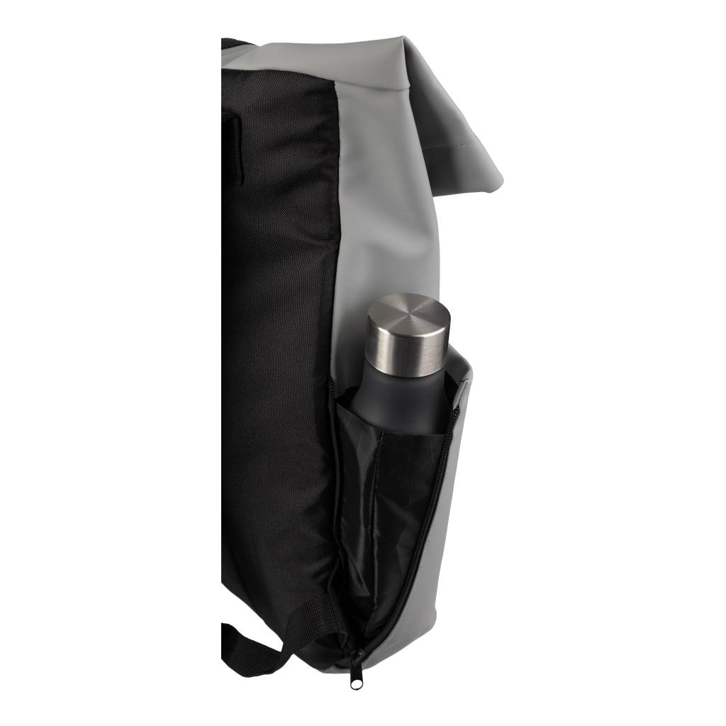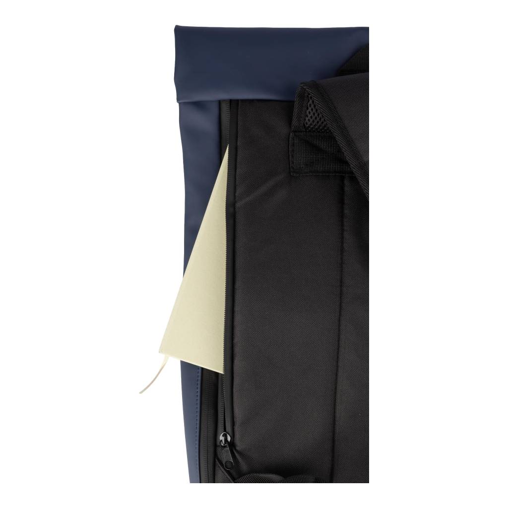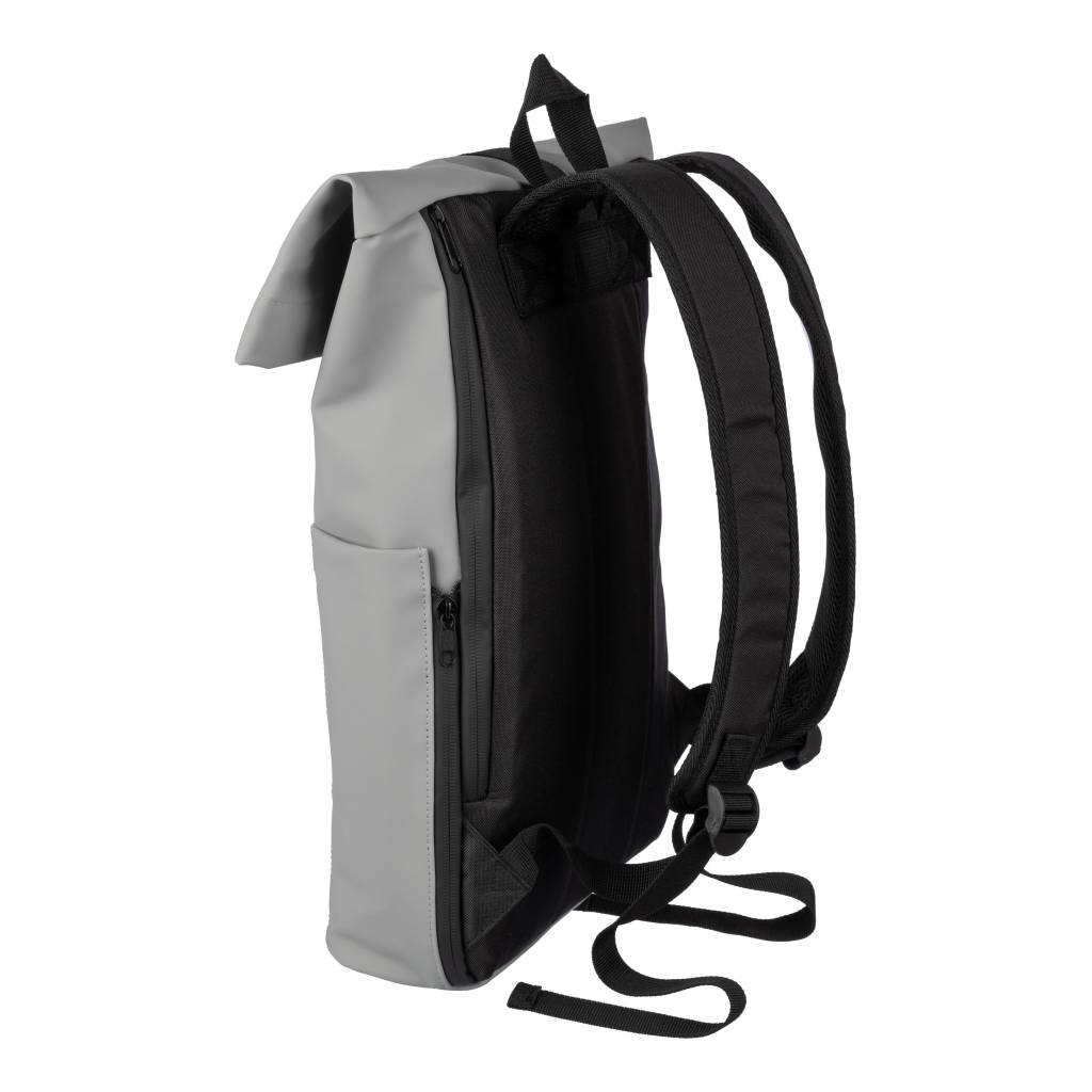 Ruksak od PU kože s PU podstavom (210D) i podlogom od PE pjene (5 mm). Uključuje džep za prijenosno računalo (15 inča) i džep s patentnim zatvaračem na prednjoj strani.