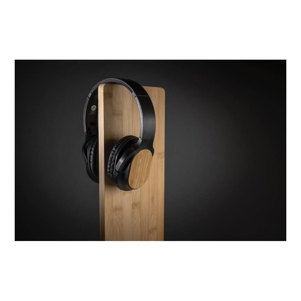 Udobne i izdržljive bežične slušalice koje koriste BT5.1 za super glatku vezu i dugotrajnu reprodukciju. Izrađen od recikliranih materijala s certifikatom RCS (Recycled Claim Standard). S FSC® 100% detaljima dizajna od bambusa na jastučićima za uši. Ukupni reciklirani sadržaj: 66 % na temelju ukupne težine predmeta. RCS certifikat osigurava potpuno certificirani opskrbni lanac recikliranih materijala. Preko ušnog dizajna slušalica omogućuje savršeno iskustvo zvuka. Sklopivi dizajn za jednostavno skladištenje. Ugrađena litijumska baterija od 200 mah koja omogućuje reprodukciju do 5 sati i može se u potpunosti napuniti za 2 sata. Radna udaljenost do 10 metara. Uključujući mikrofon za odgovaranje na telefonske pozive. Uključujući RCS certificirani reciklirani TPE kabel za punjenje. Pakirano u FSC® mix ambalažu.