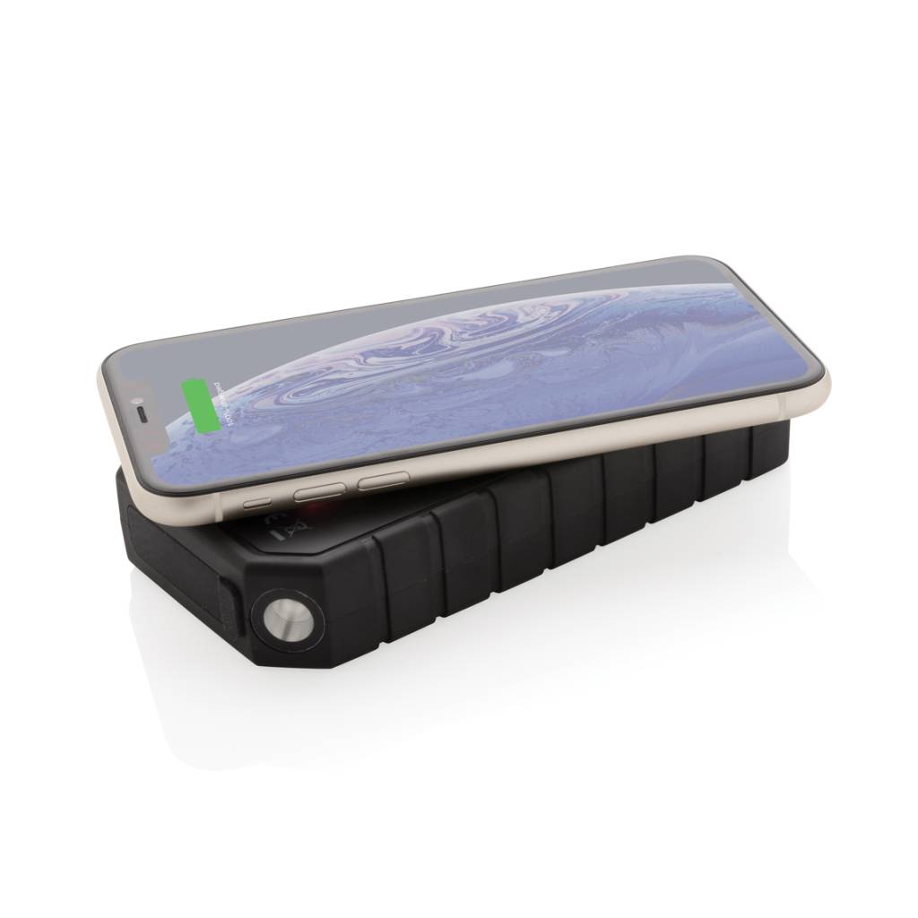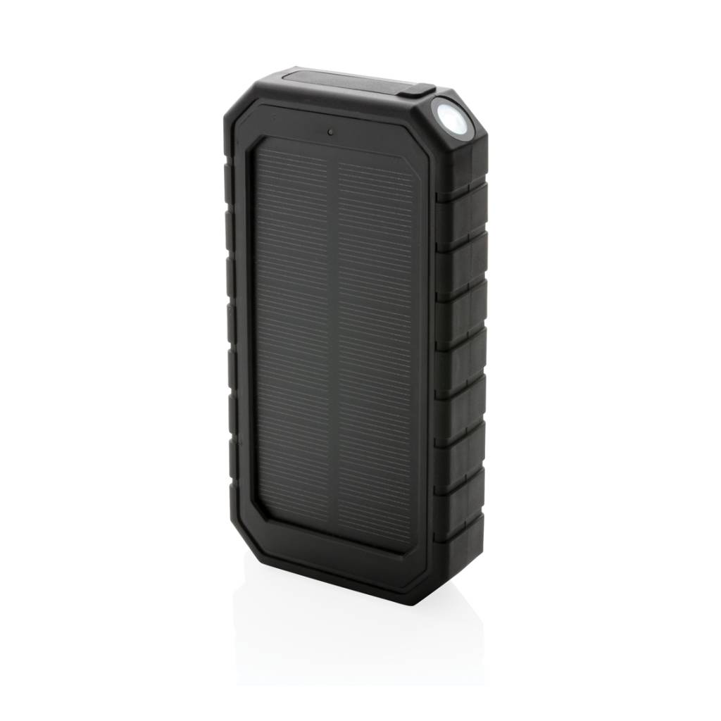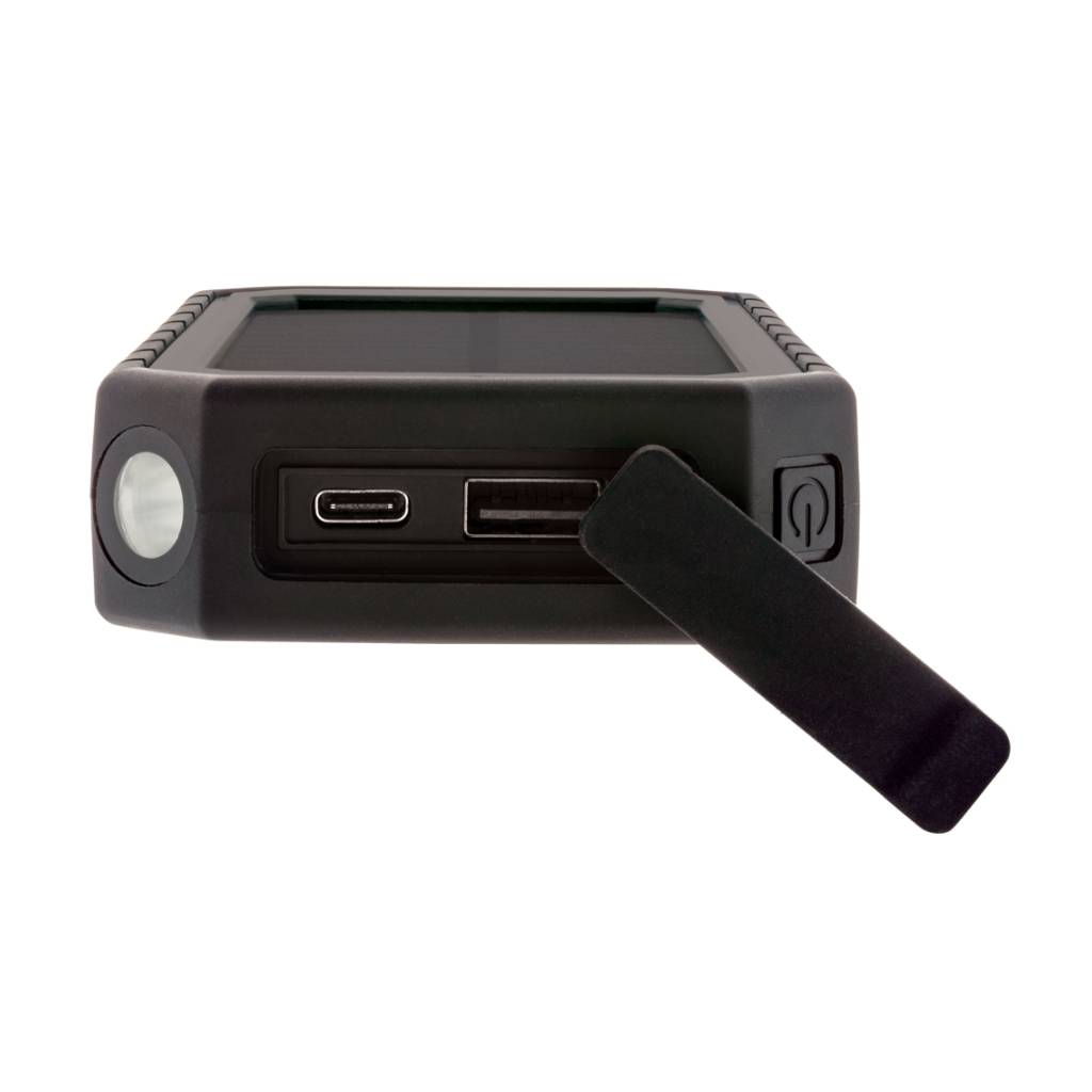 Brza solarna baterija za bežično punjenje od 10.000 mah i 10 W izrađena od recikliranog ABS-a i TPE-a s certifikatom RCS (Recycled Claim Standard). Ukupni reciklirani sadržaj: 30% na temelju ukupne težine predmeta. RCS certifikat osigurava potpuno certificirani opskrbni lanac recikliranih materijala. Powerbank podržava punjenje putem kabela (tip C i USB) kao i putem bežičnog brzog punjača od 10 W. Bežično punjenje kompatibilno sa svim uređajima koji podržavaju QI kao što su najnovija generacija Androida, iPhone 8 i noviji. Ima solarnu ploču zajedno sa svjetiljkom i karabinerom za pričvršćivanje na bilo koju torbu. IPX5 vodootporan. S indikatorom preostale baterije. Uključujući tip C kabel za punjenje izrađen od GRS certificiranog recikliranog TPE-a. Pakirano u FSC® mix kraft kutiju. USB izlaz: 5V/2.4A; Tip C Izlaz: 5V/2.4A. Stavka i dodaci 100% Bez PVC-a