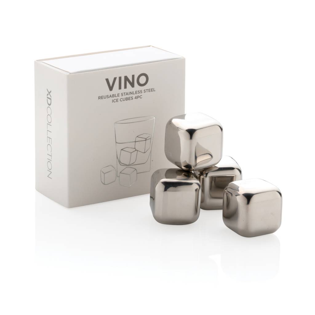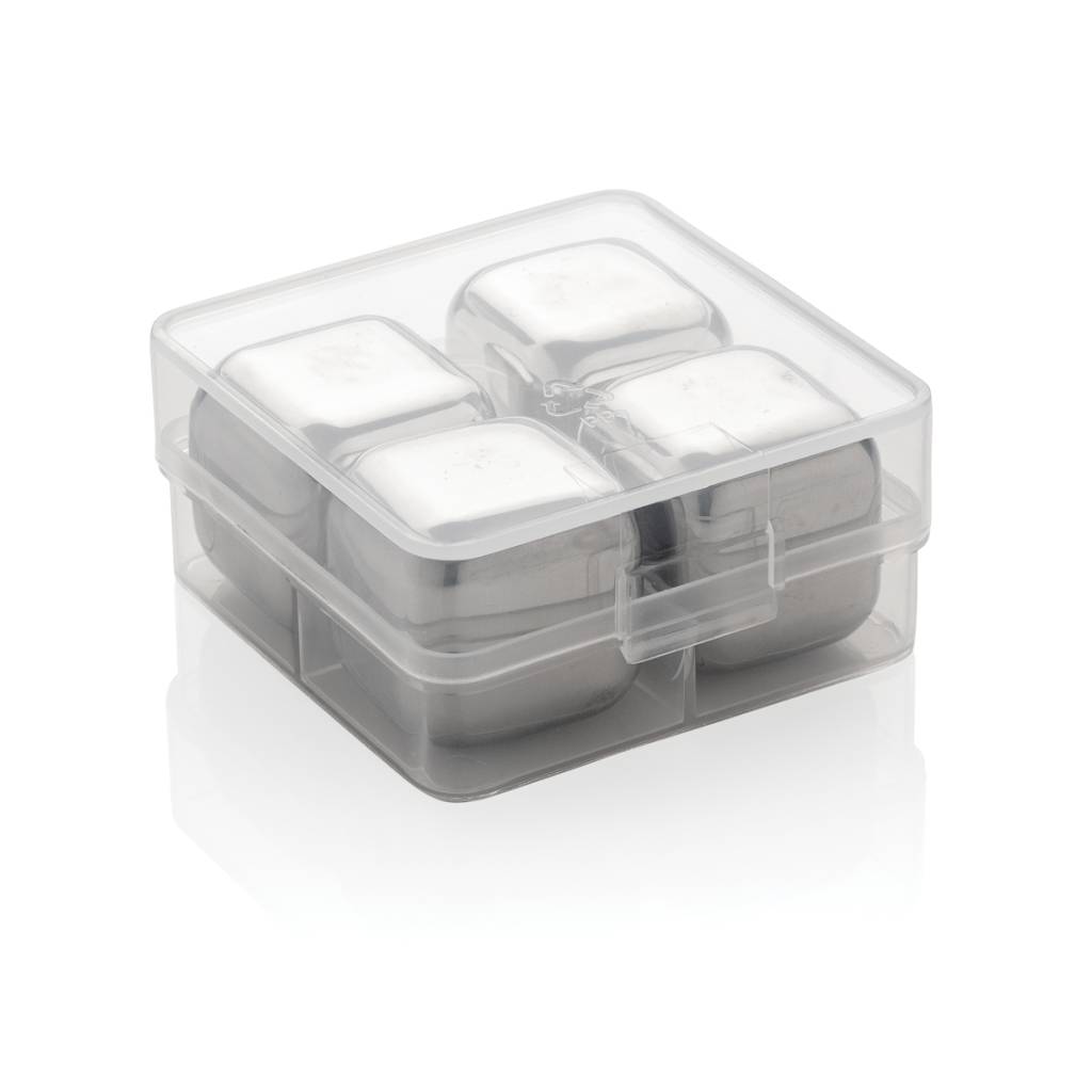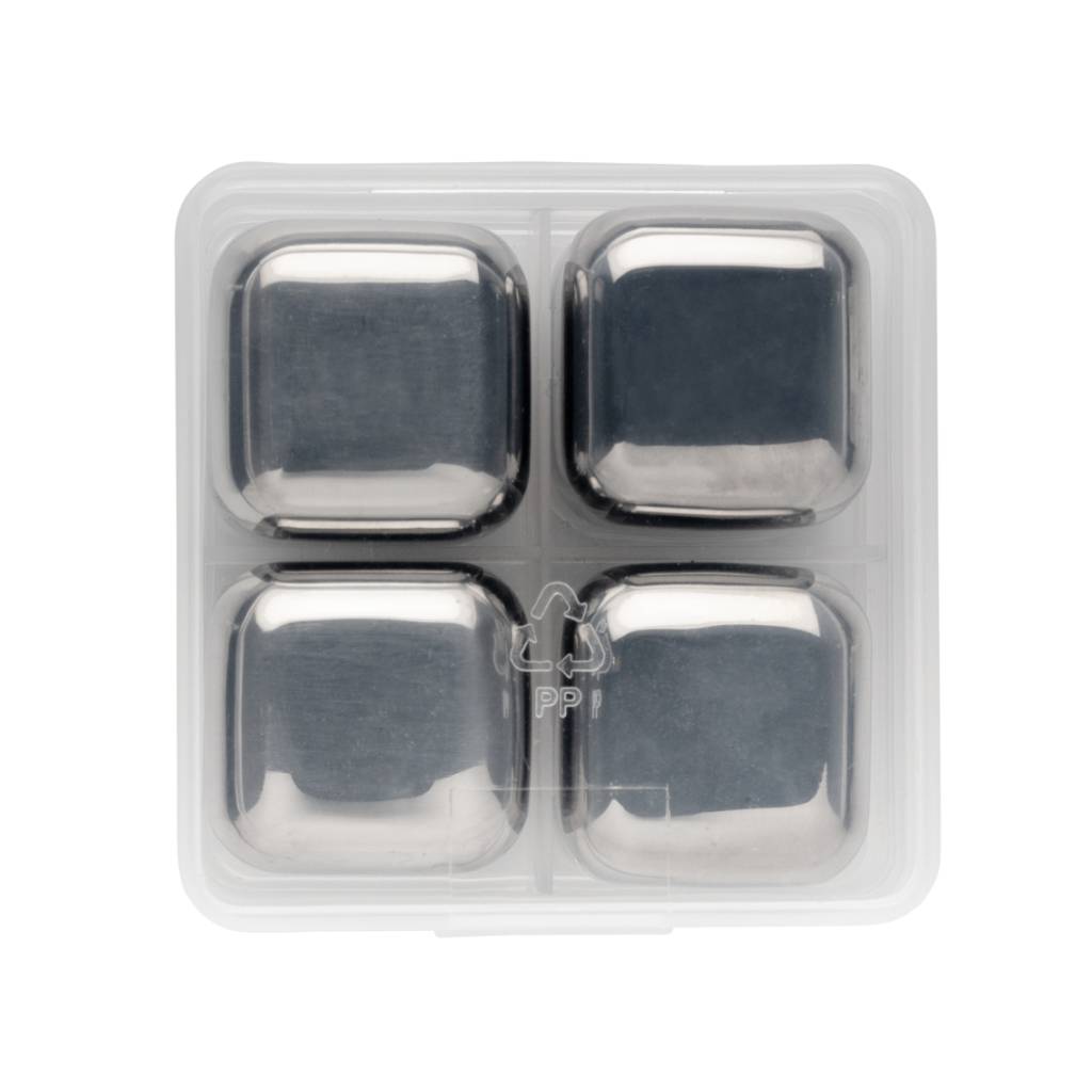 Uživajte u svom ohlađenom piću uz ovaj set od 4 kocke leda od nehrđajućeg čelika. Kockice pomažu u očuvanju okusa vašeg omiljenog pića bez razrjeđivanja. Set dolazi u praktičnoj kutiji za pohranu. Jednostavni su za korištenje: samo ih spremite u zamrzivač i spremni su za upotrebu za samo 3 sata! Veličina kocke 2,5x2,5x2,5cm.