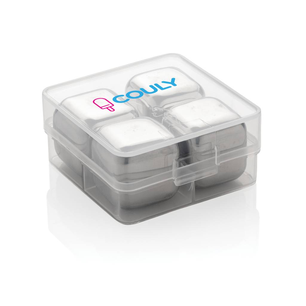 Uživajte u svom ohlađenom piću uz ovaj set od 4 kocke leda od nehrđajućeg čelika. Kockice pomažu u očuvanju okusa vašeg omiljenog pića bez razrjeđivanja. Set dolazi u praktičnoj kutiji za pohranu. Jednostavni su za korištenje: samo ih spremite u zamrzivač i spremni su za upotrebu za samo 3 sata! Veličina kocke 2,5×2,5×2,5cm.