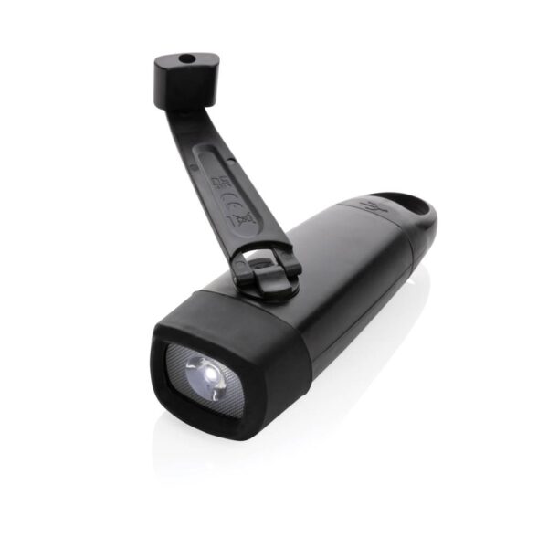 Dugotrajna punjiva svjetiljka koja se može puniti s vremena na vrijeme pa nema potrebe za zamjenom baterija što ovu svjetiljku čini održivim izborom. Ova aluminijska svjetiljka od 3 W proizvodi 130 lumena i snop do 200 metara. Uključuje 3 načina osvjetljenja: svijetlo, kratka svjetla i bljeskanje. Sa svojom ocjenom IPX 4 pogodan je i za korištenje u lošim vremenskim uvjetima. S ugrađenom litijskom baterijom od 2200 mAh koja omogućuje vrijeme korištenja do 8 sati. Ponovno punjenje traje otprilike 2 sata. Uključujući mikro USB kabel za ponovno punjenje putem USB utičnice.