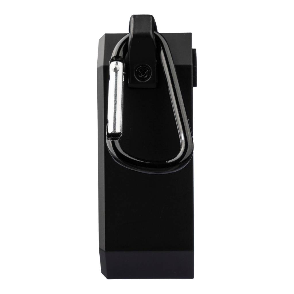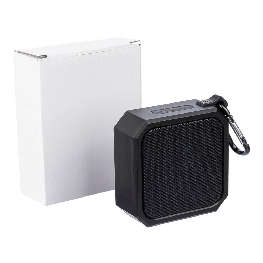 ABS zvučnik s karabinerom i plastičnom kopčom. Ocijenjeno IPX4. Izlazna snaga 3 W, ulaz DC 5 V, ugrađena punjiva baterija od 300 mAh, s 2 sata vremena sviranja. Radna udaljenost 15-20 metara, odnos signal/šum 87 dB. Frekvencijski raspon: 100 Hz do 20 kHz. Uključuje 50 cm Type-C kabel za punjenje. Tehnologija bežičnog povezivanja: 5.2. Pojedinačno pakirano u smeđu kartonsku kutiju.