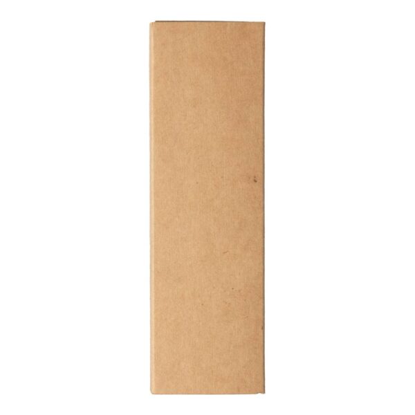 Kemijska olovka od recikliranog nehrđajućeg čelika, uključujući logo od recikliranog nehrđajućeg čelika na stražnjoj strani, s plavom tintom. Pojedinačno pakirano u poklon kutiju od kraft papira.