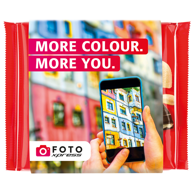 Ritter SPORT čokolada u promotivnoj kutijici od bijelog kartona, pojedinačno otisnuta. Sadržaj: 1 Ritter SPORT čokoladica marcipan, 100 g.
