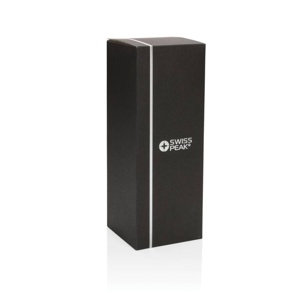 Ova sportska boca Swiss Peak deluxe od tritana stane u vašu ruku jednako lako kao što stane u vašu sportsku torbu. Povrh toga, njegov poklopac koji se može zaključati ima izdržljiv dizajn koji pomaže u uklanjanju curenja i prolijevanja. S dizajnom koji ne klizi i izljevom koji se upravlja pomoću 7 tipki. Integrirana ručka u poklopcu za jednostavno nošenje. Kapacitet 700ml. Bez BPA.
